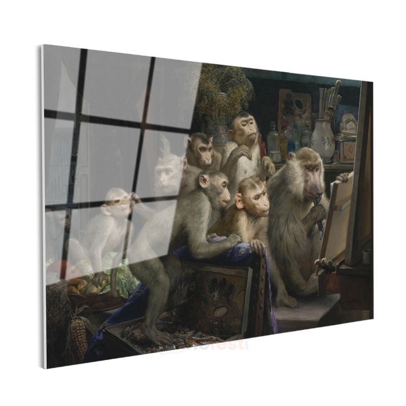 Gabriel von Max - Maymun Eleştirmenler Cam Tablo