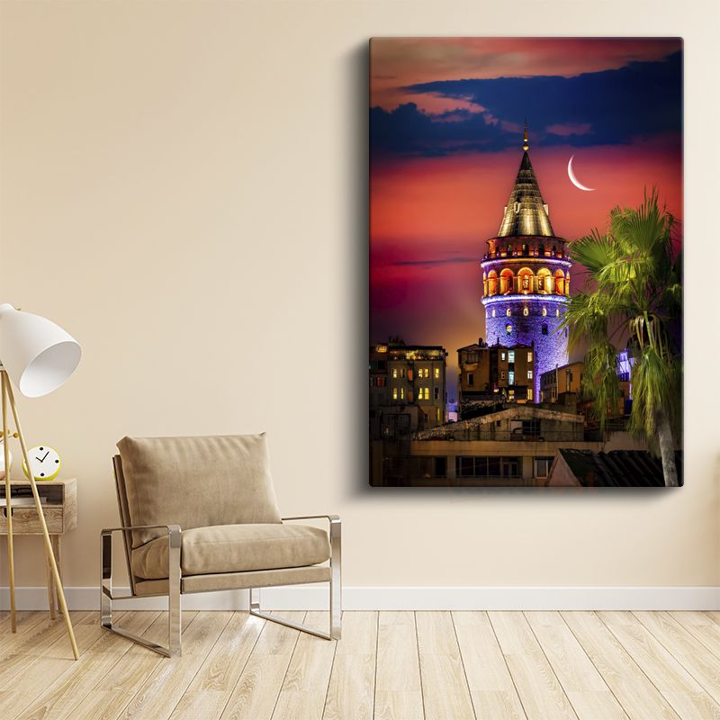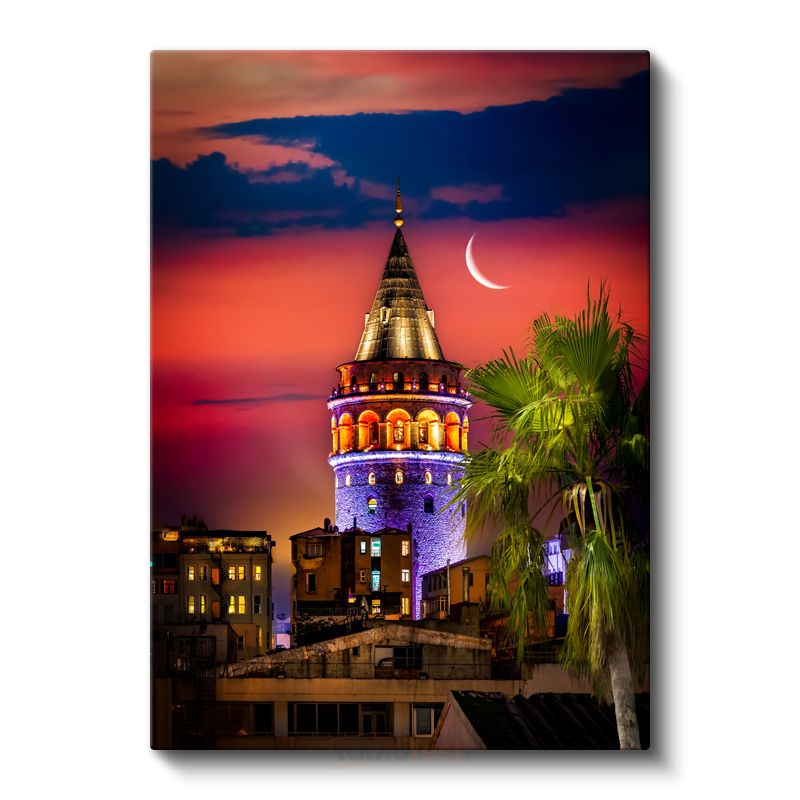 Galata Kulesi - Işıklar ve Hilal Kanvas Tablo