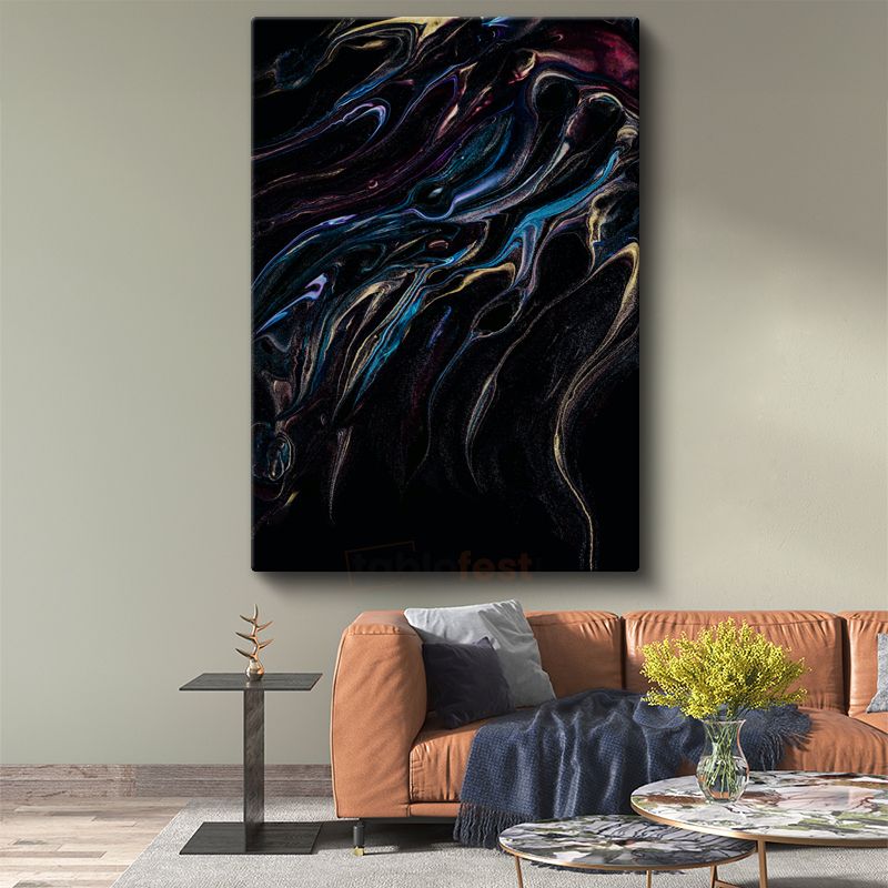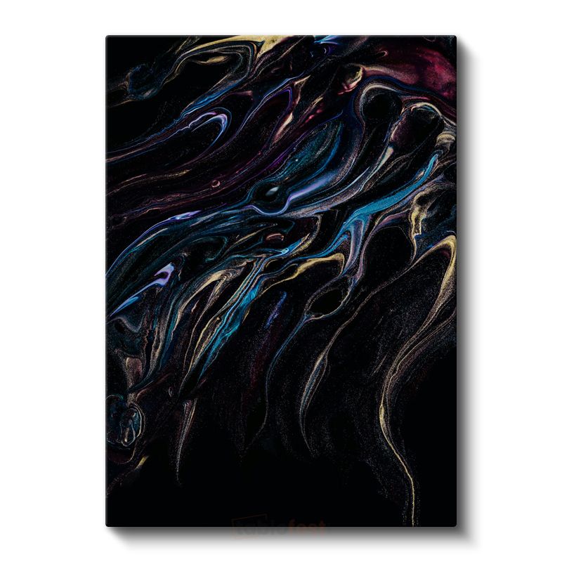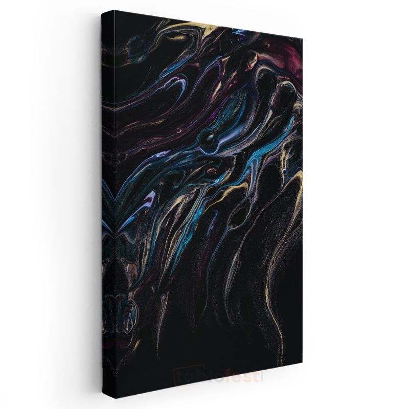 Gece Akışı - Koyu Zeminde Renkli Dalgalar Kanvas Tablo