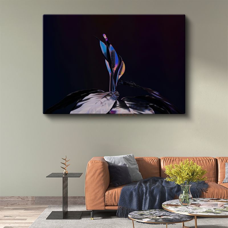 Gece Çiçeği - Metalik Mavi Tonlarda Stilize Flora Kanvas Tablo