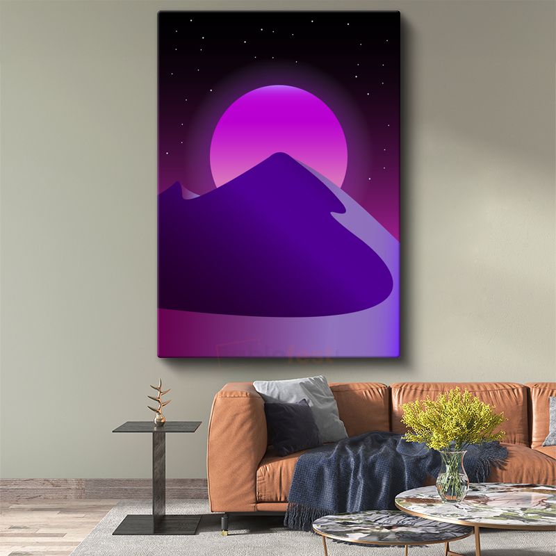 Gece Dağları - Mor Tonlarda Retrowave Manzara Kanvas Tablo