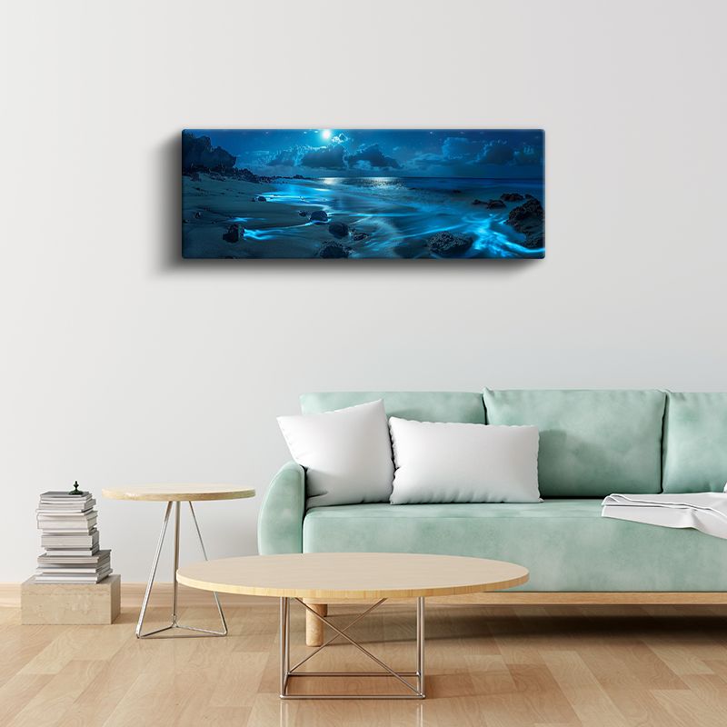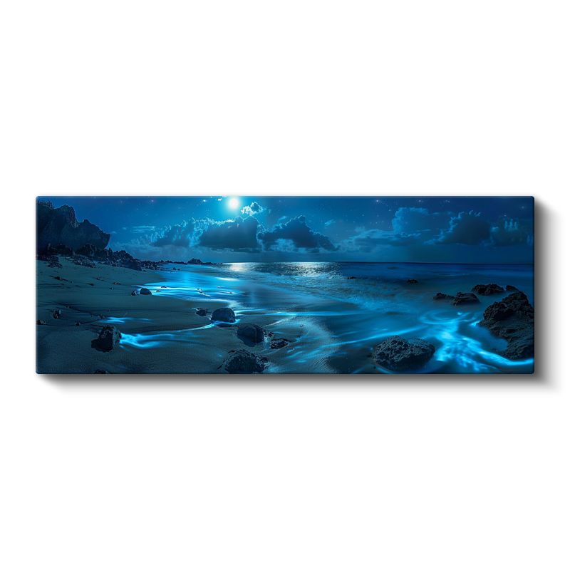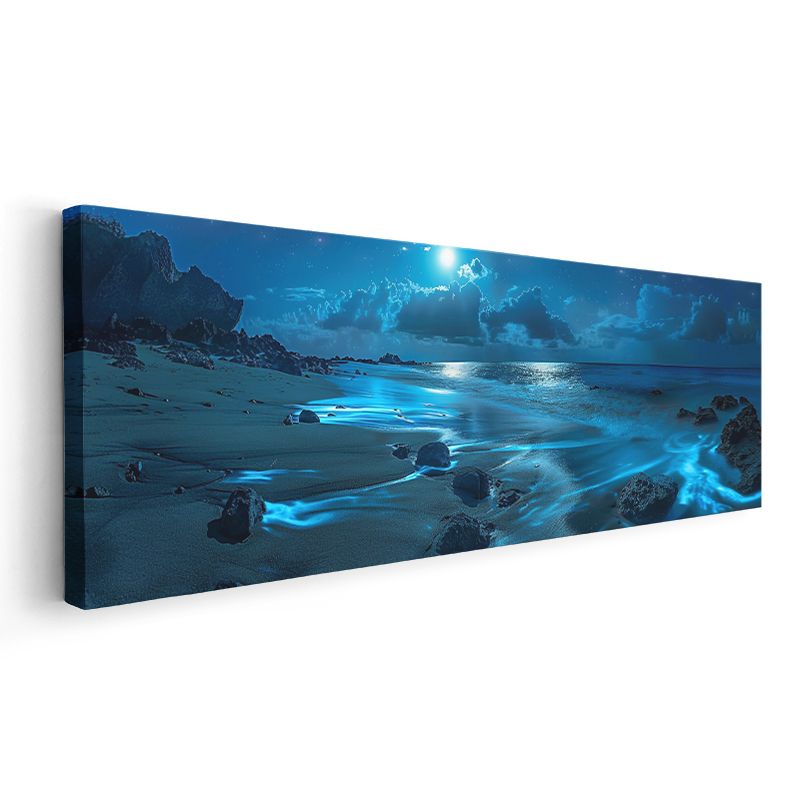 Gece Denizi - Mavi Işıltılı Dalgalar Kanvas Tablo