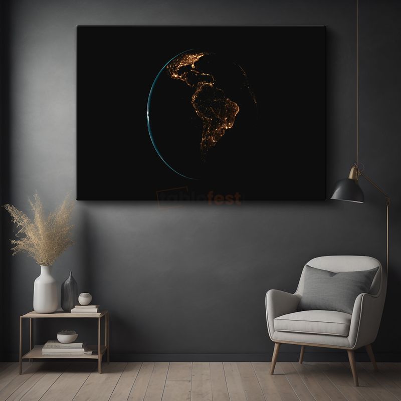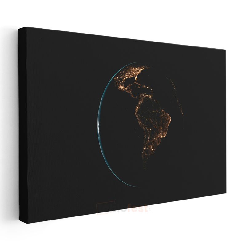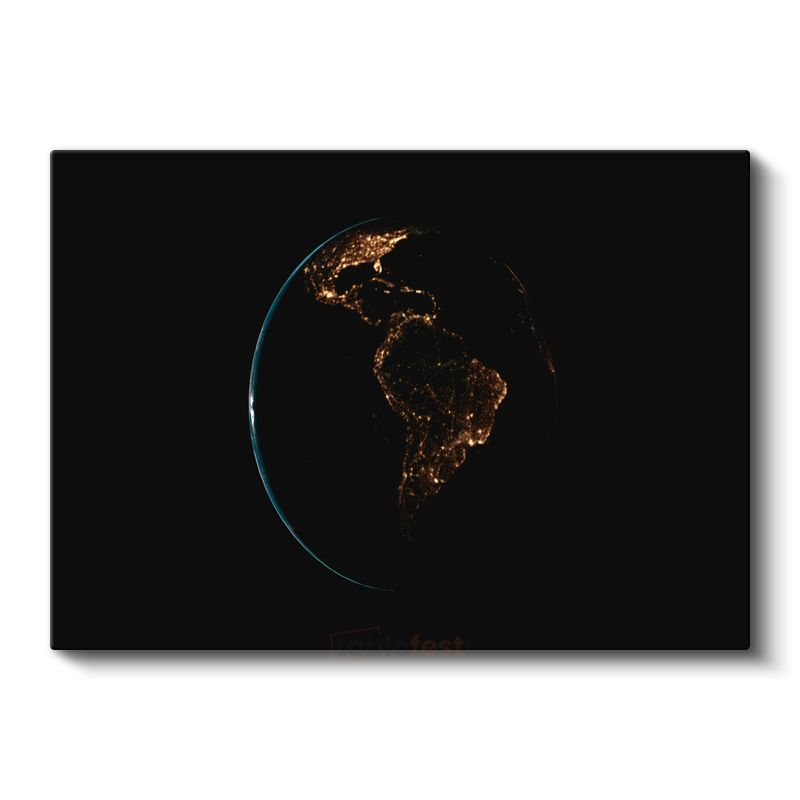 Gece Dünyası - Işıklarla Aydınlanan Kıtalar Kanvas Tablo