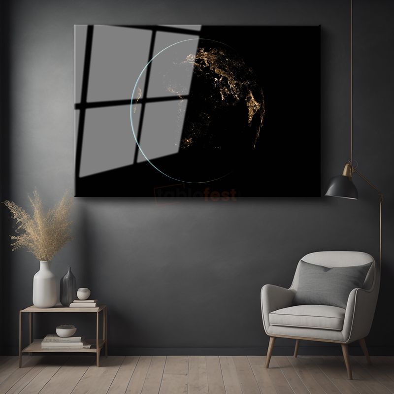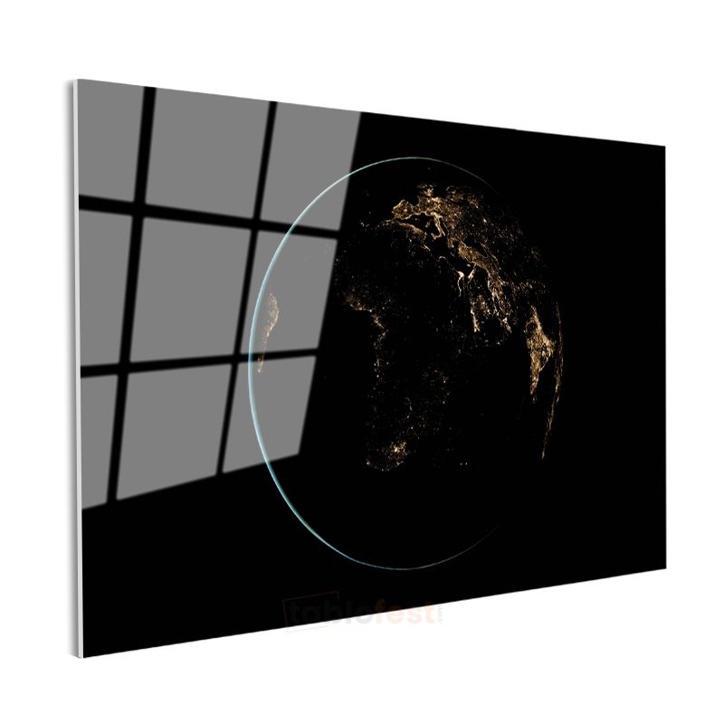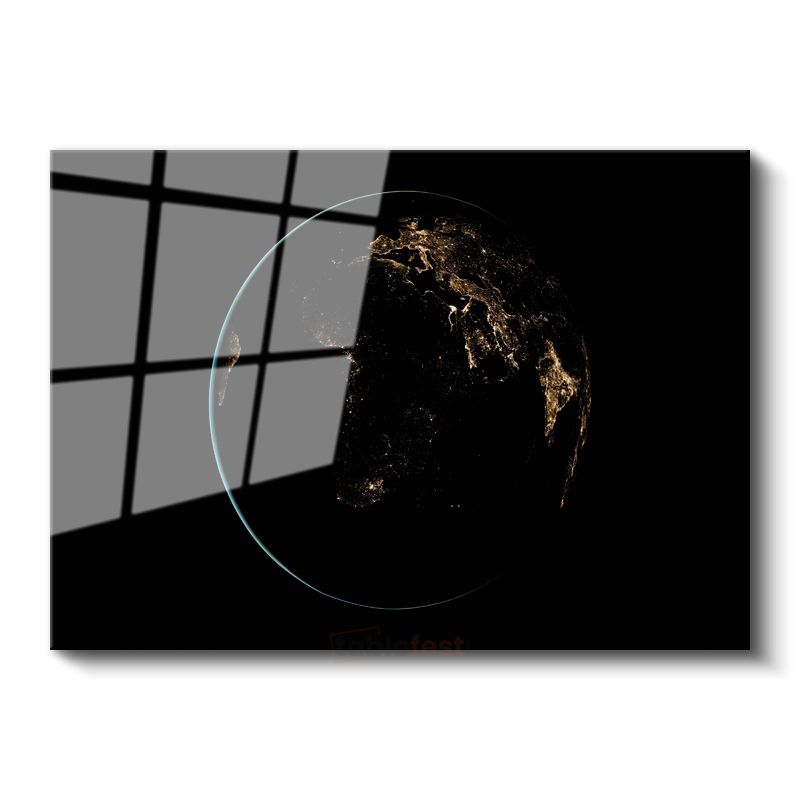 Gece Dünyası - Karanlıkta Parlayan Şehirler Cam Tablo