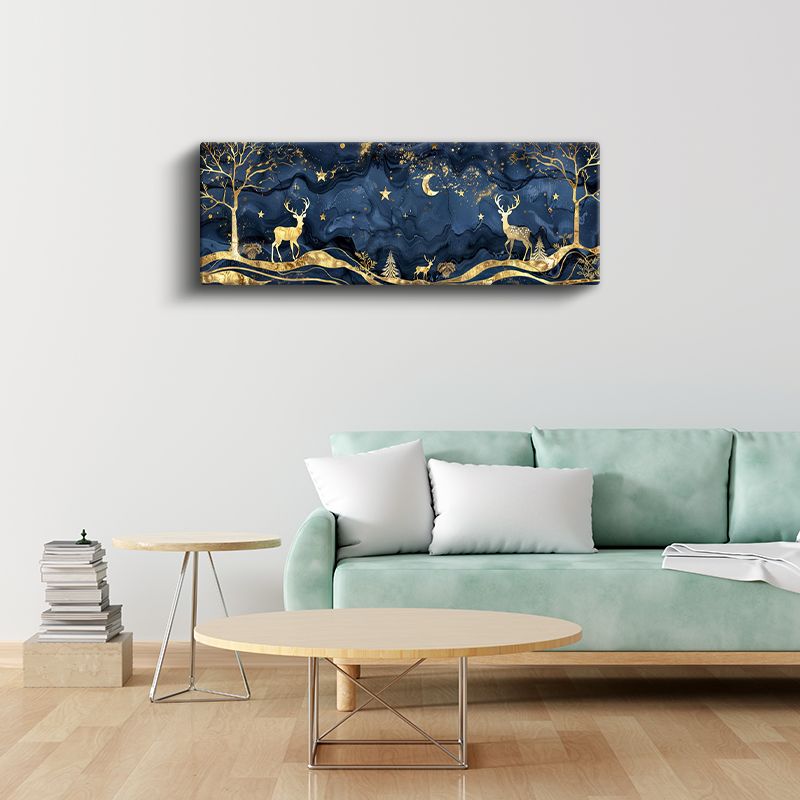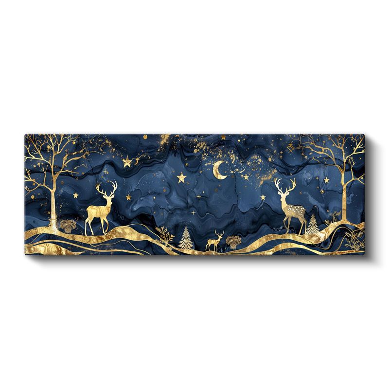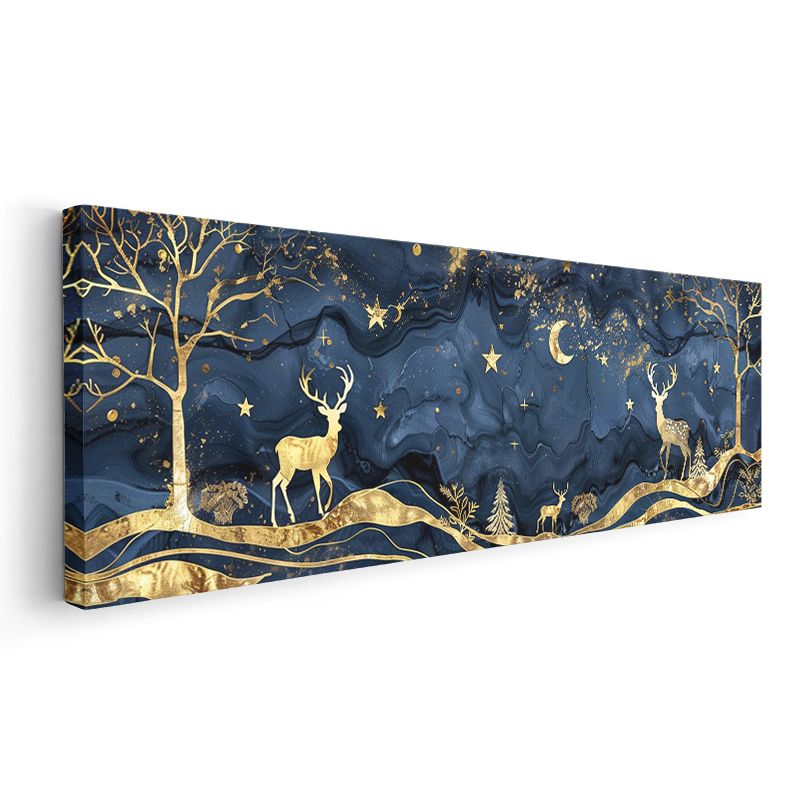 Gece Geyikleri - Yıldızlı Gökyüzü Altında Altın Geyikler Kanvas Tablo