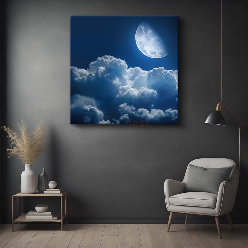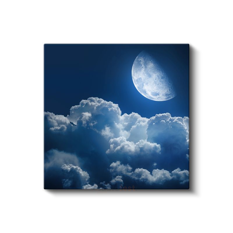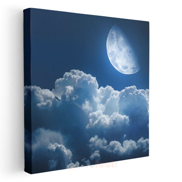 Gece Gökyüzü - Bulutlar Üzerinde Ay Kanvas Tablo
