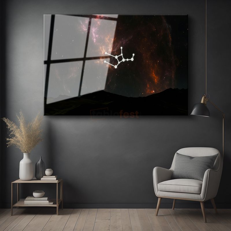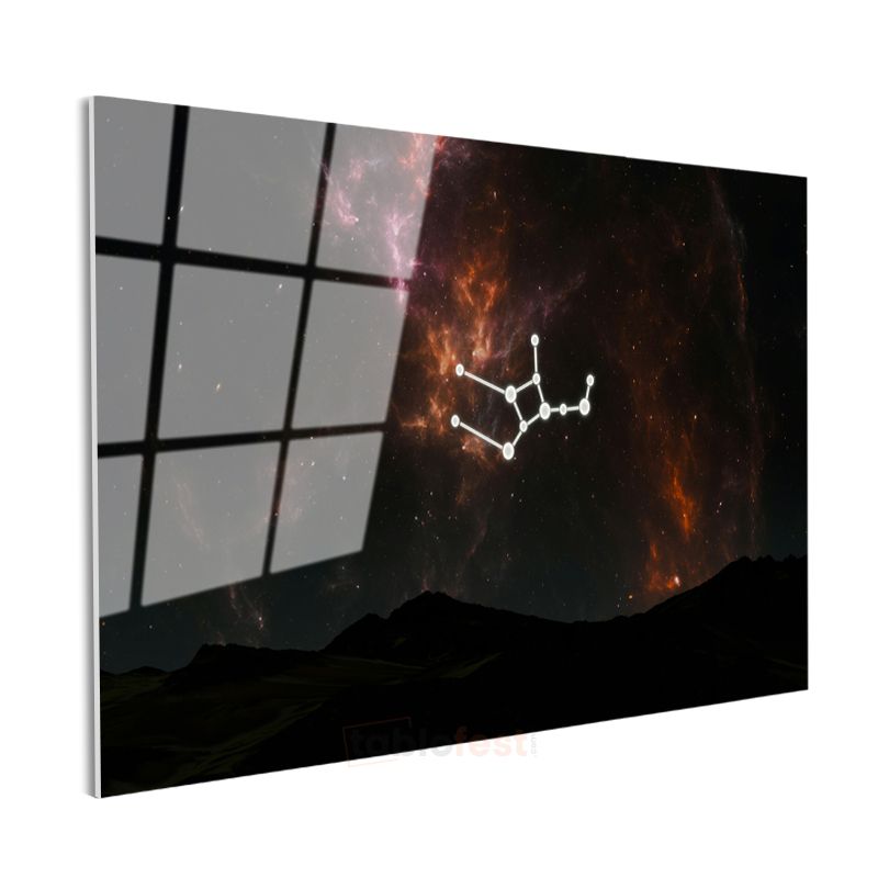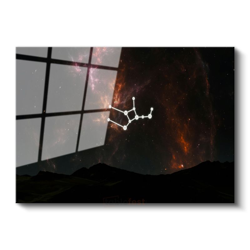 Gece Gökyüzü - Takımyıldızlar ve Dağ Silüeti Cam Tablo