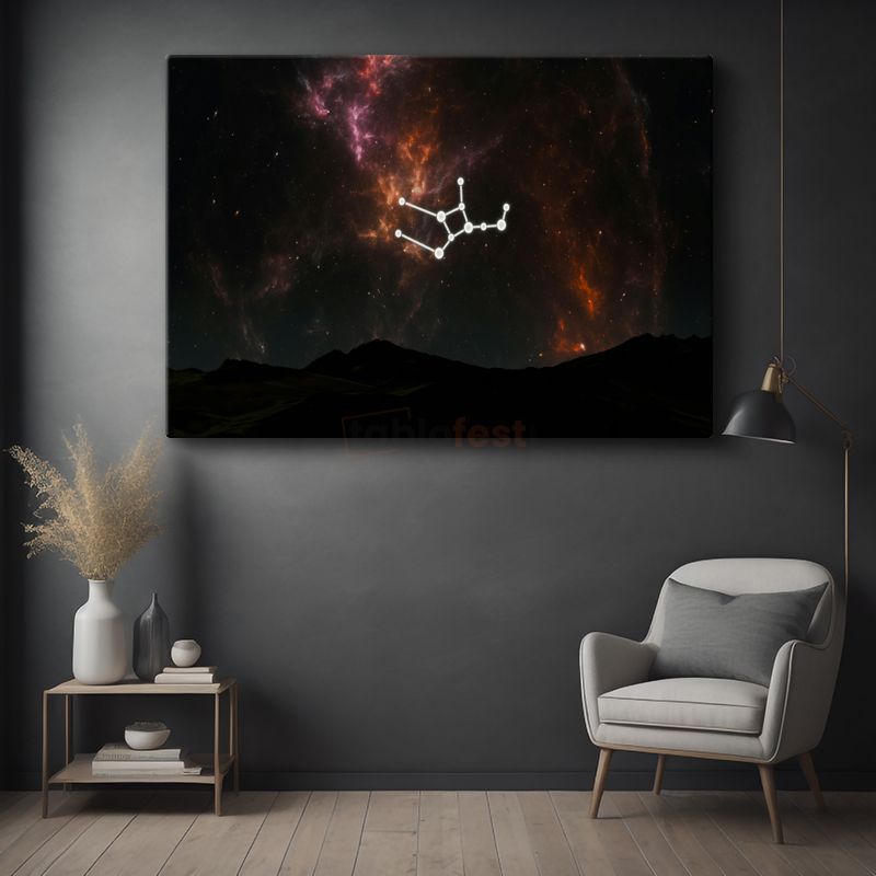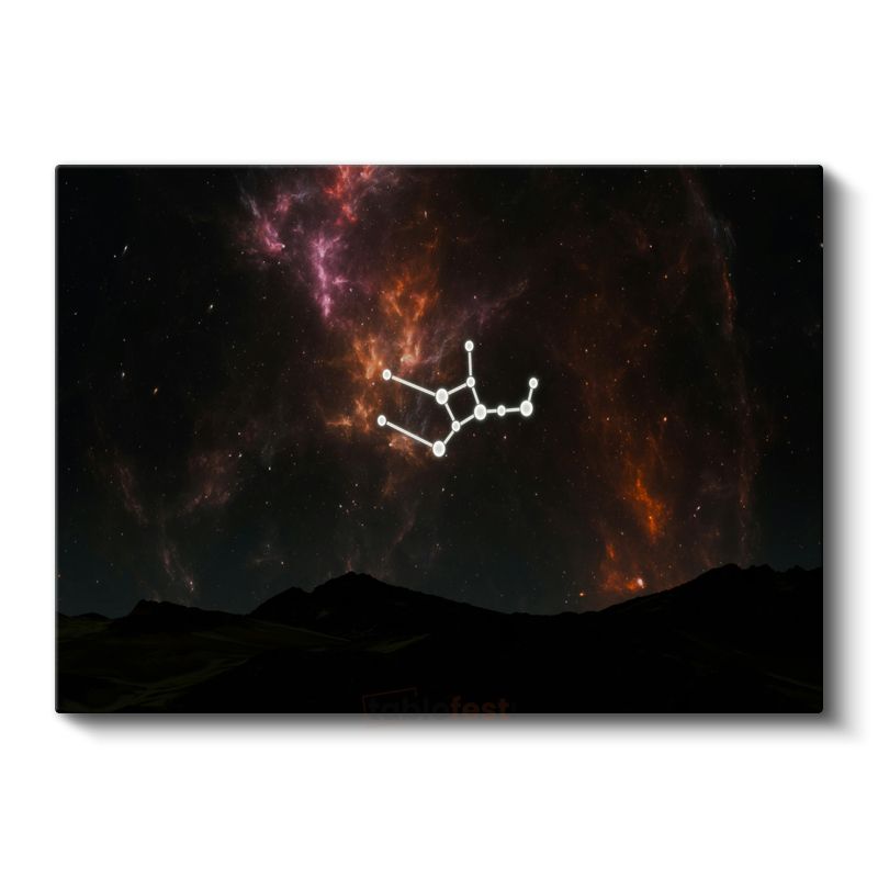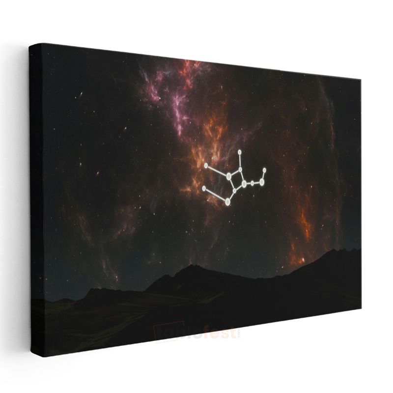 Gece Gökyüzü - Takımyıldızlar ve Dağ Silüeti Kanvas Tablo