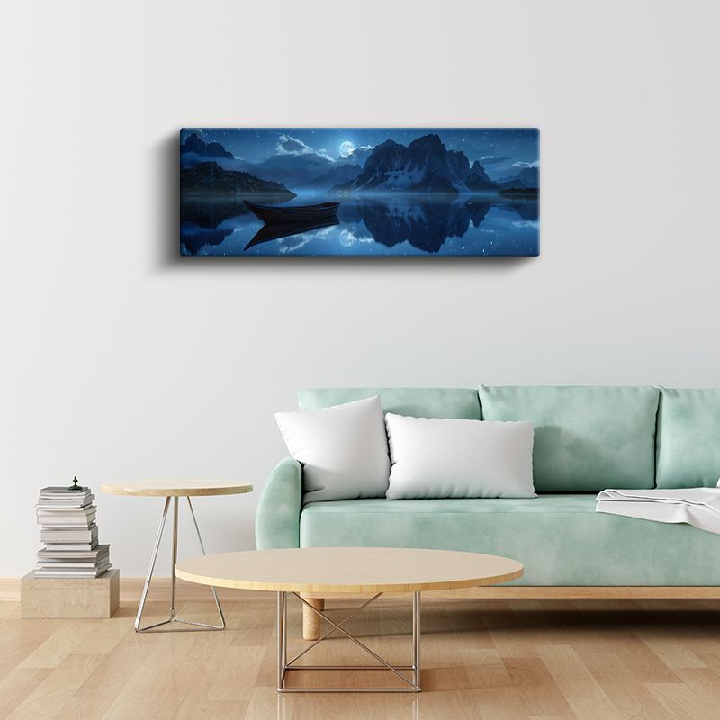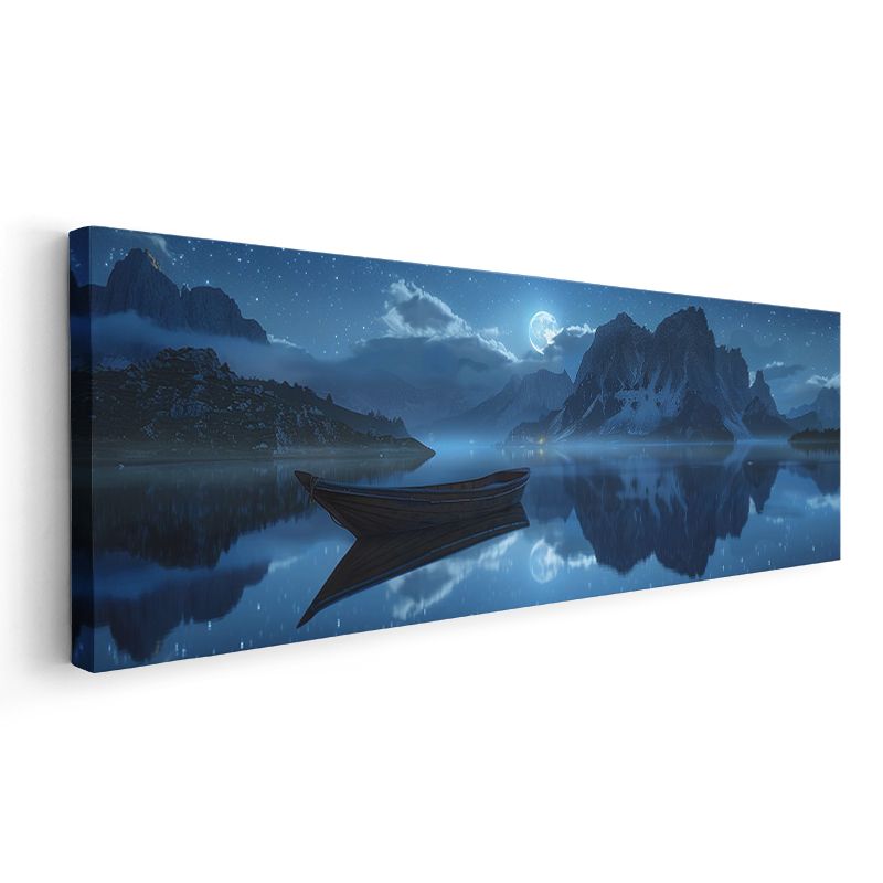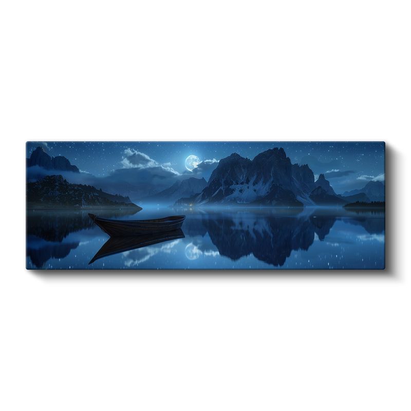 Gece Gölü - Ay Işığında Dağların Yansıması Kanvas Tablo