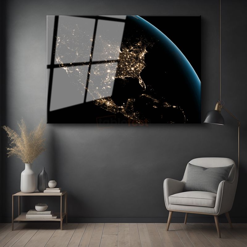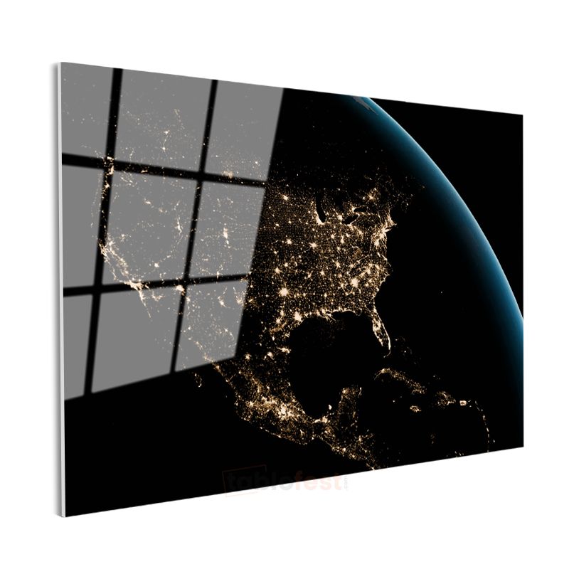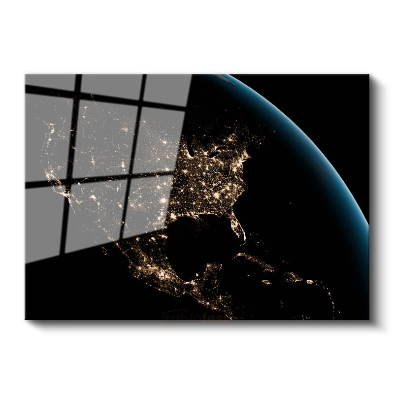 Gece Işıkları - Kuzey Amerika Manzarası Cam Tablo