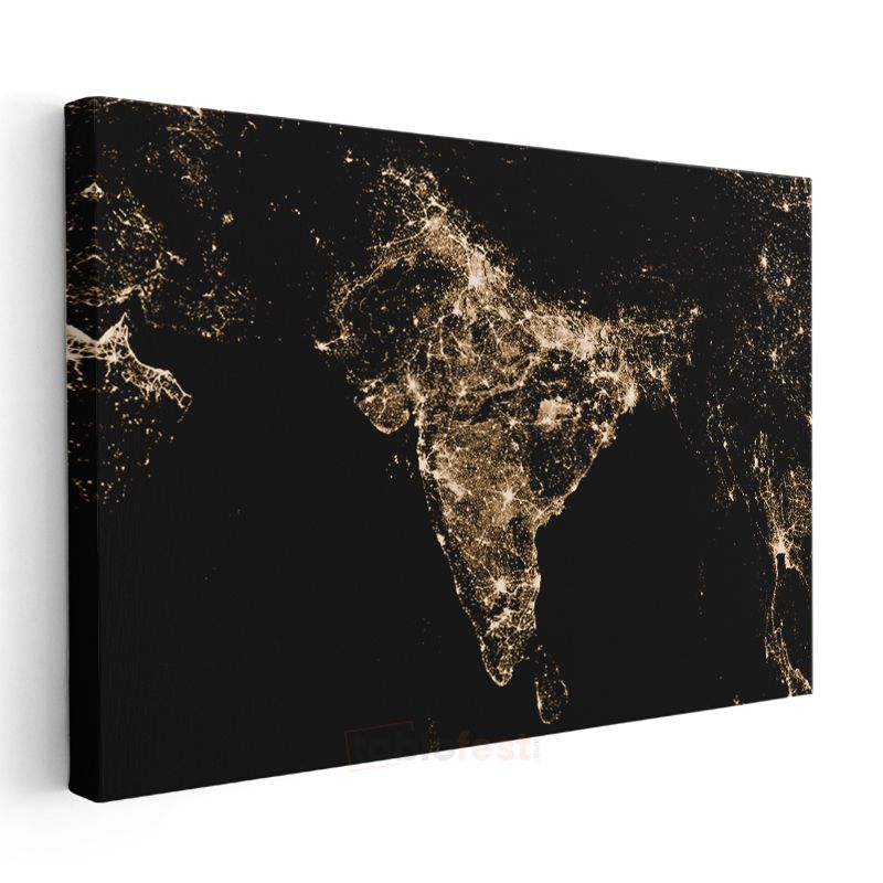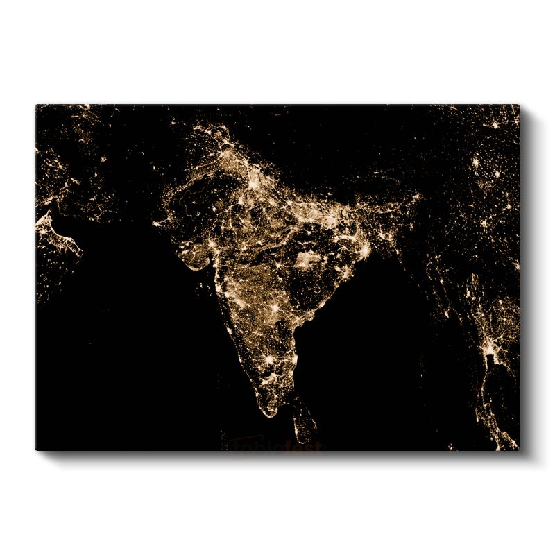 Gece Işıkları - Uzaydan Görünen Hindistan Haritası Kanvas Tablo