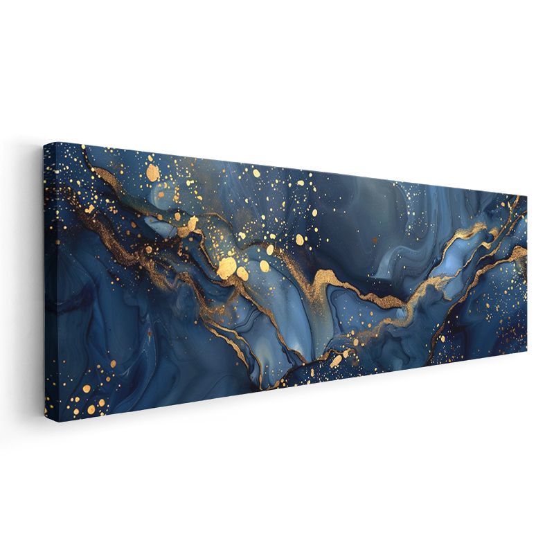 Gece Mavisi Altın Damarlar - Lüks Soyut Akışkan Sanat Kanvas Tablo