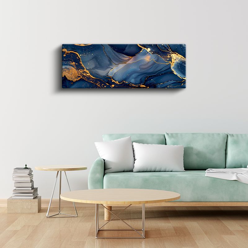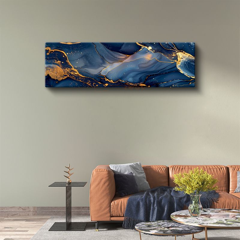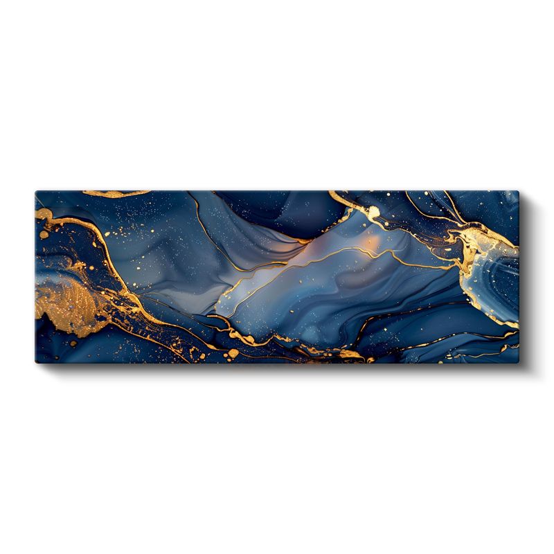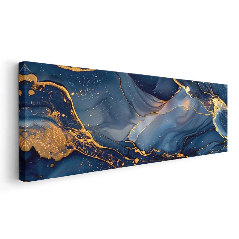 Gece Mavisi - Altın Damarlar ve Akışkan Desenler Kanvas Tablo