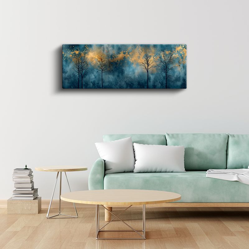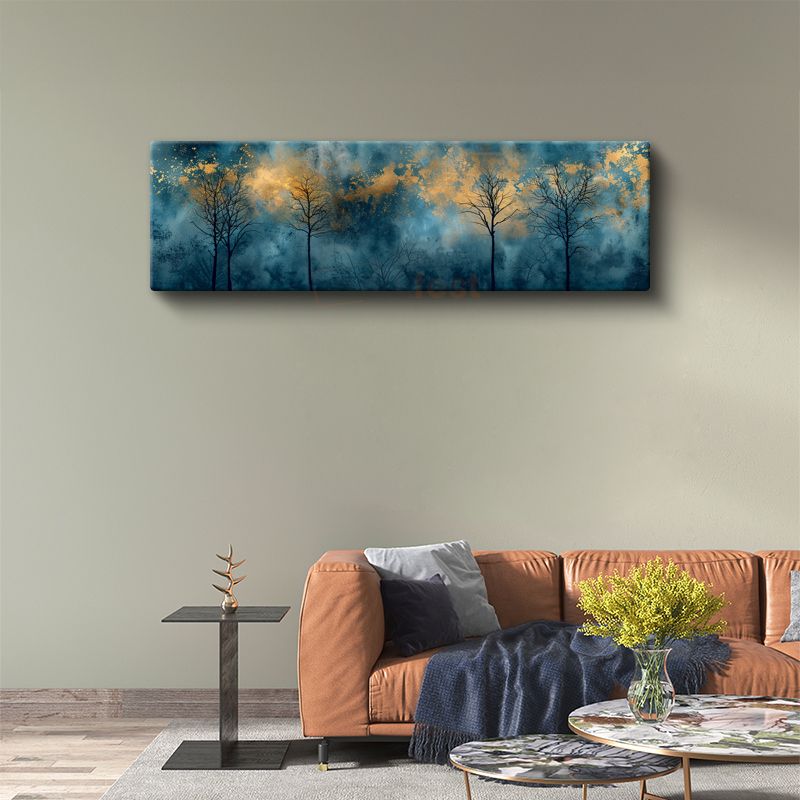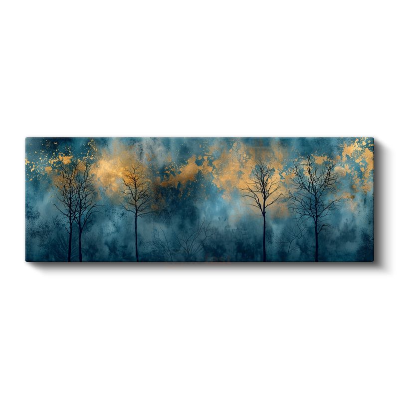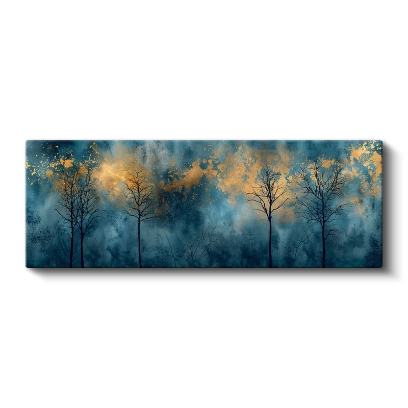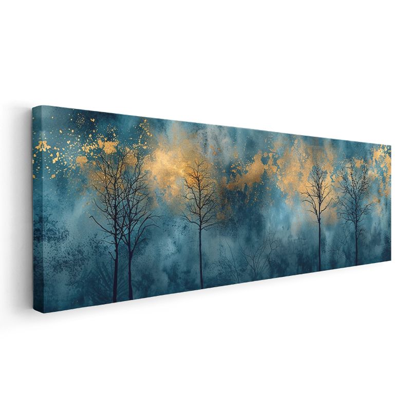 Gece Ormanı - Altın Işıklı Ağaç Siluetleri Kanvas Tablo