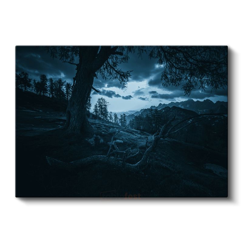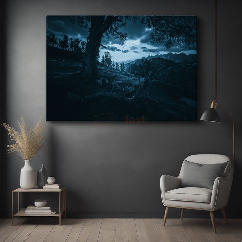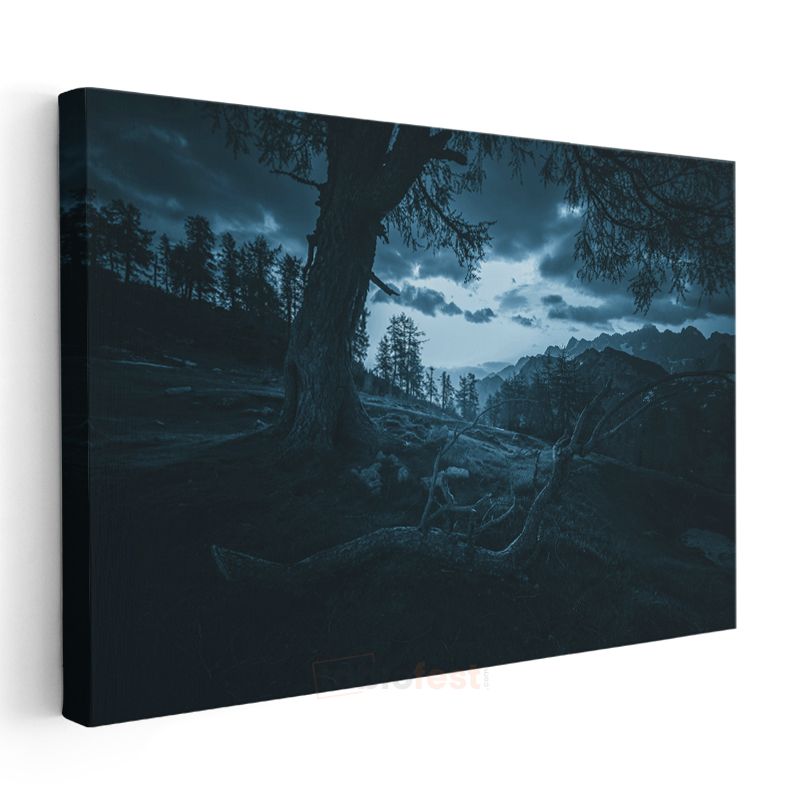 Gece Ormanı - Ay Işığında Dağ Silüeti Kanvas Tablo