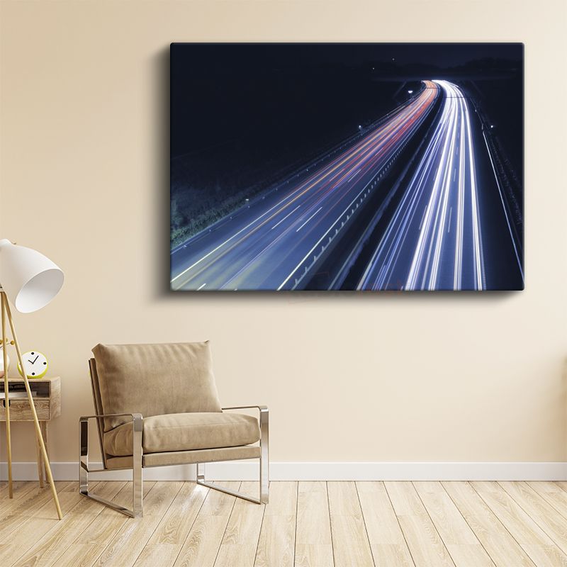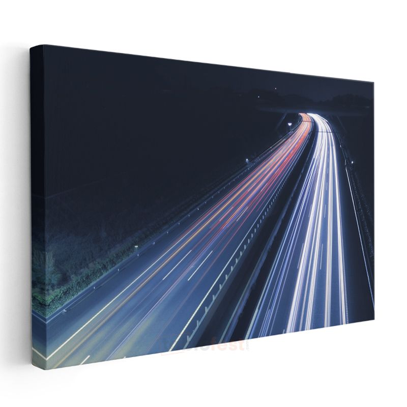 Gece Otoyolu - Işık İzleri Kanvas Tablo