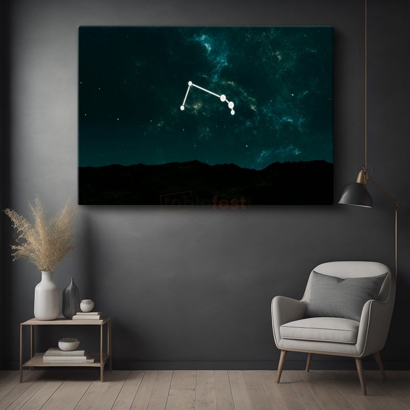 Gece Takımyıldızı - Dağlar Üzerinde Yıldız Haritası Kanvas Tablo