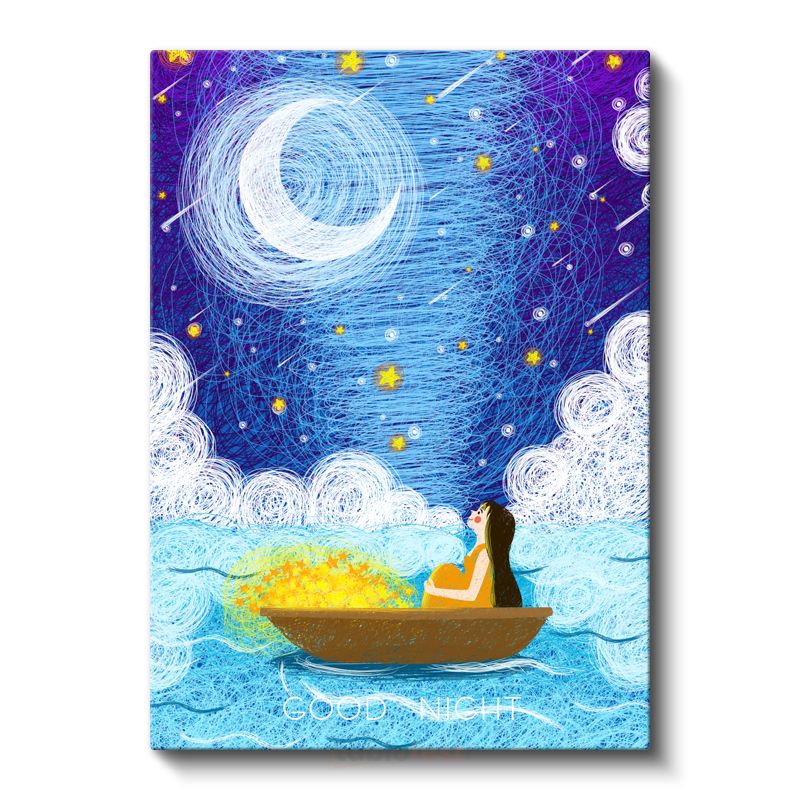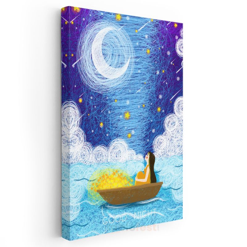 Gece Teknesi - Yıldızlar Altında Huzurlu Anlar Kanvas Tablo