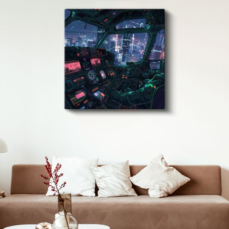 Gece Uçuşu - Neon Şehir Anime Kanvas Tablo