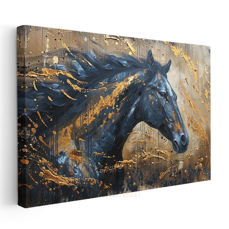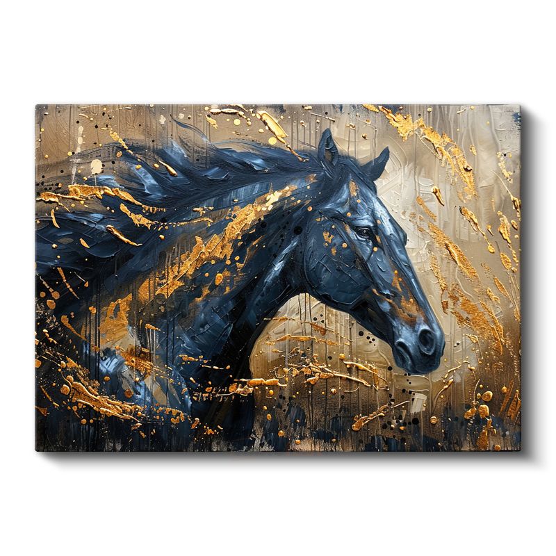 Gece ve Altın - Modern Tarzda At Başı Kanvas Tablo