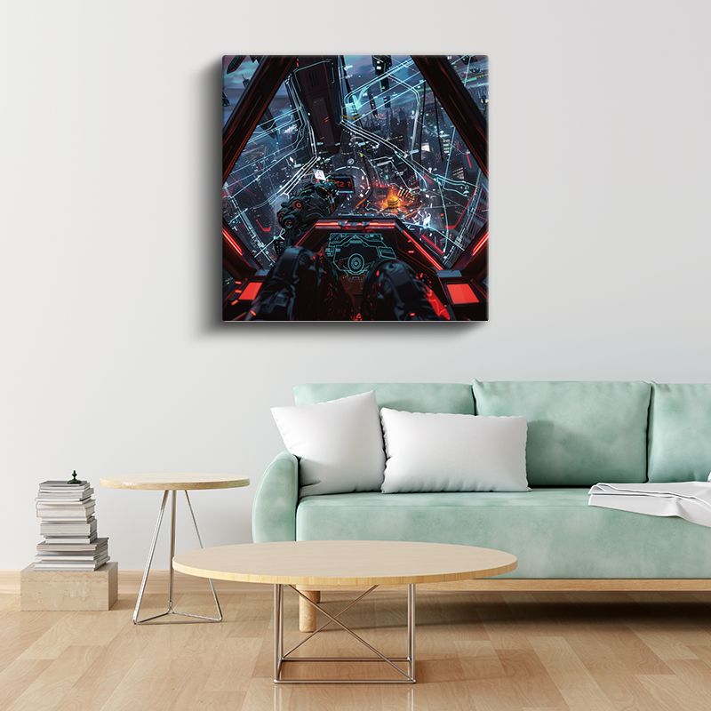 Gelecek Kokpiti - Hologram Şehir Anime Kanvas Tablo