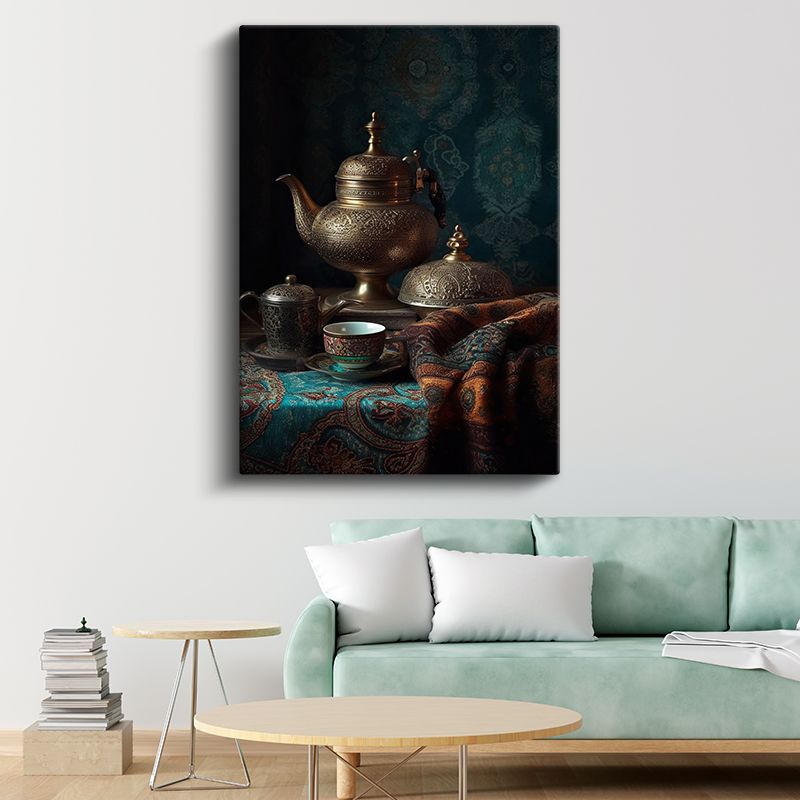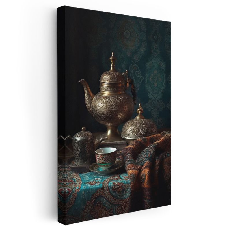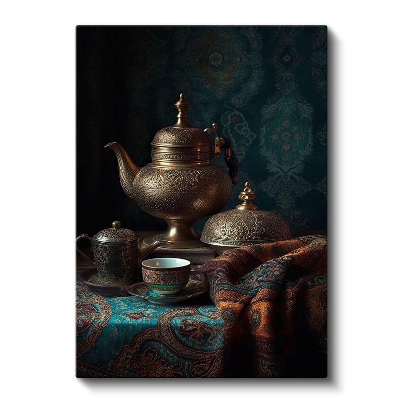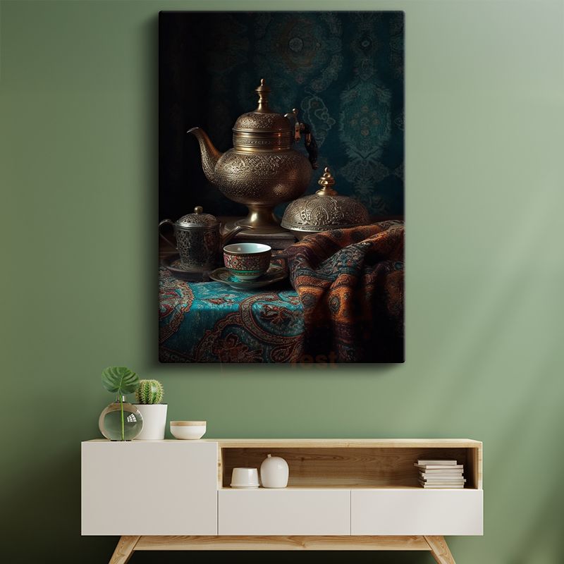 Geleneksel Çay Seremonisi - Antik Bakır Demlik Kompozisyonu Kanvas Tablo