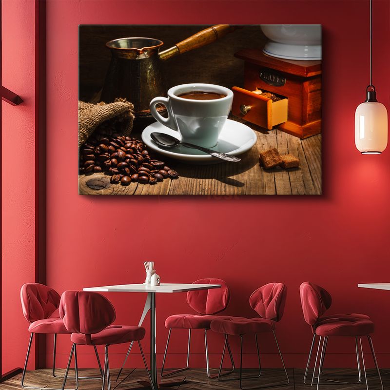 Geleneksel Kahve Keyfi - Fincan ve Değirmen Kanvas Tablo
