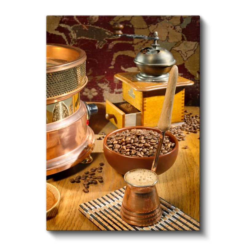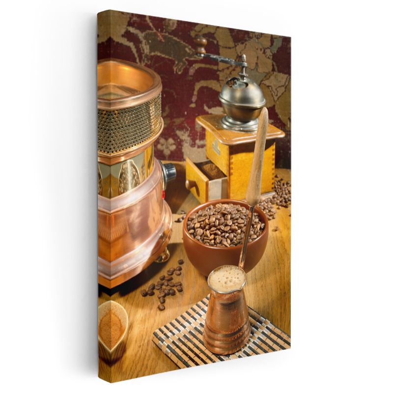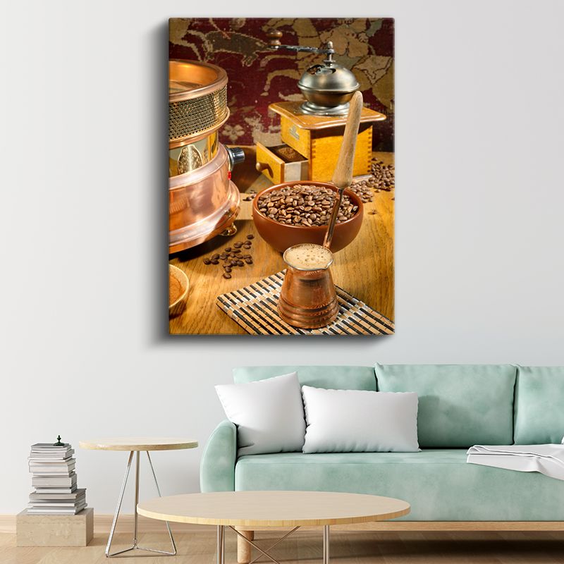 Geleneksel Kahve Ritüeli - Kahve Çekirdekleri ve Değirmen Kanvas Tablo