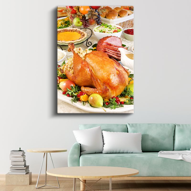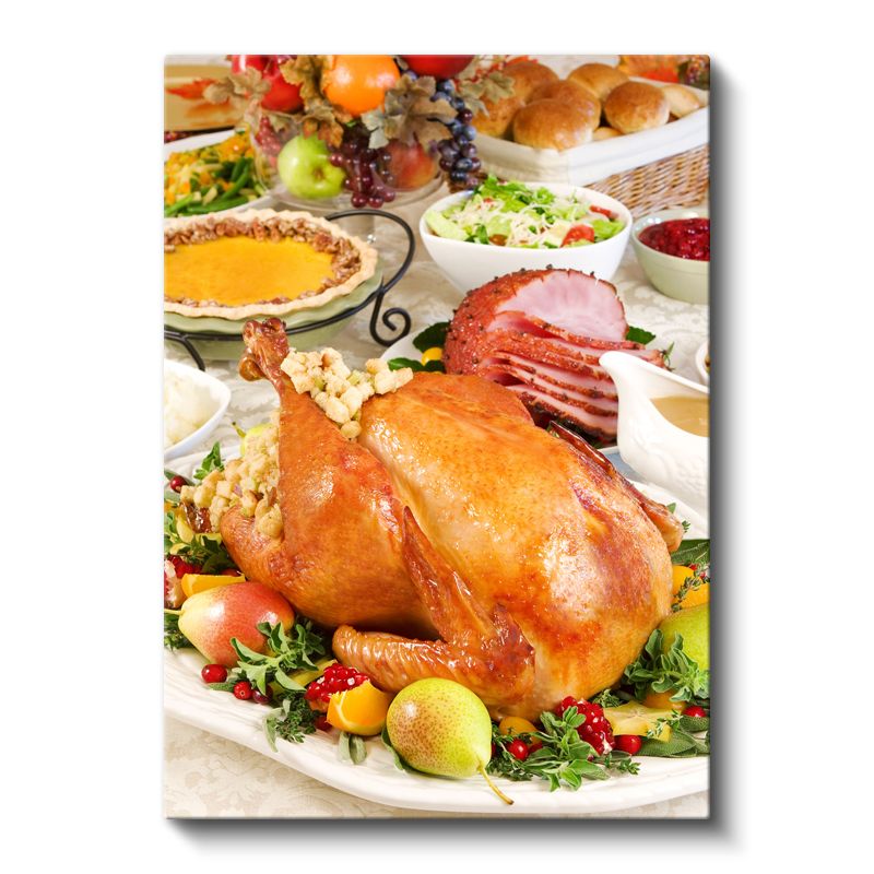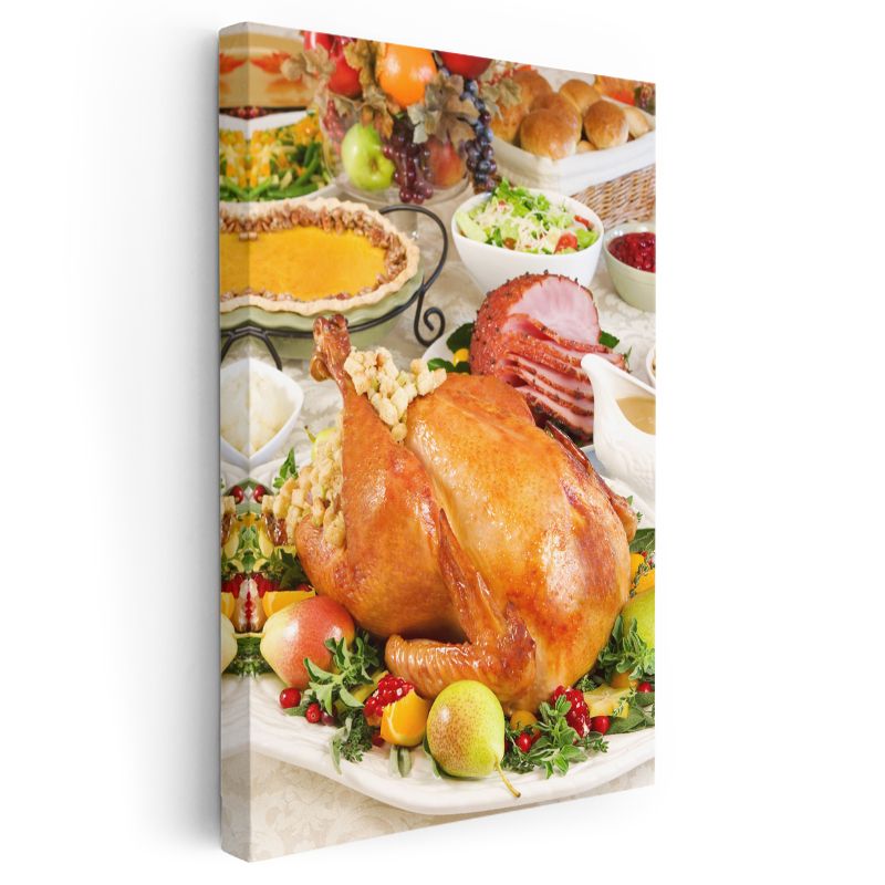 Geleneksel Ziyafet - Kızarmış Hindi ve Garnitürler Kanvas Tablo
