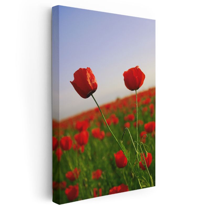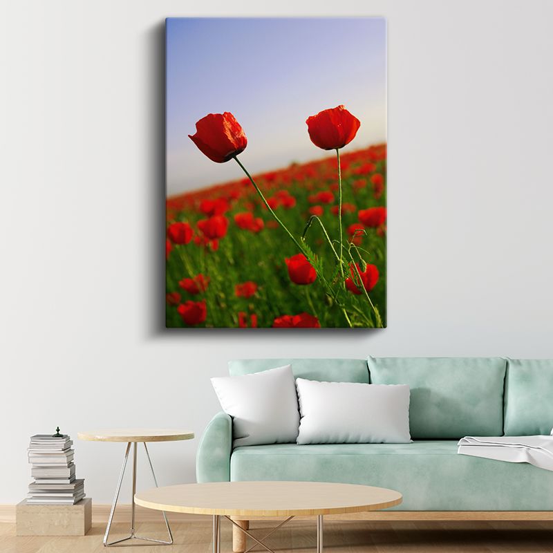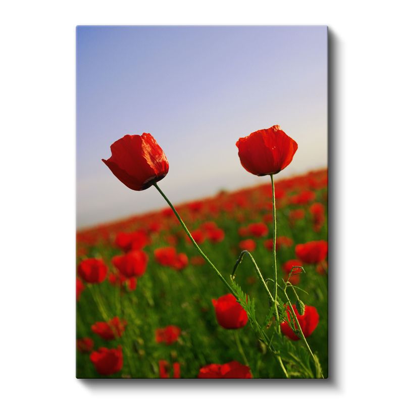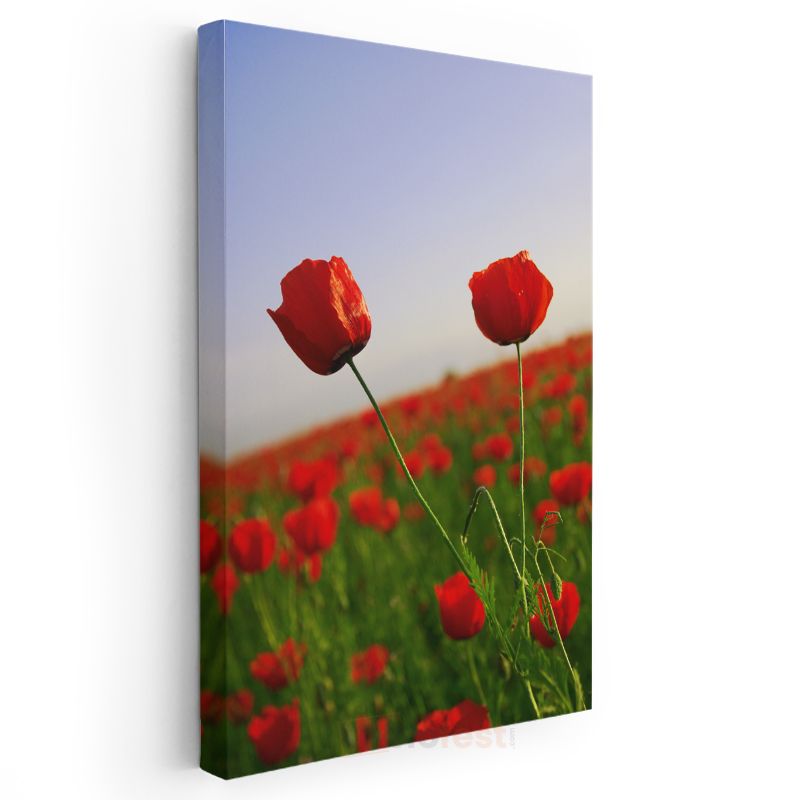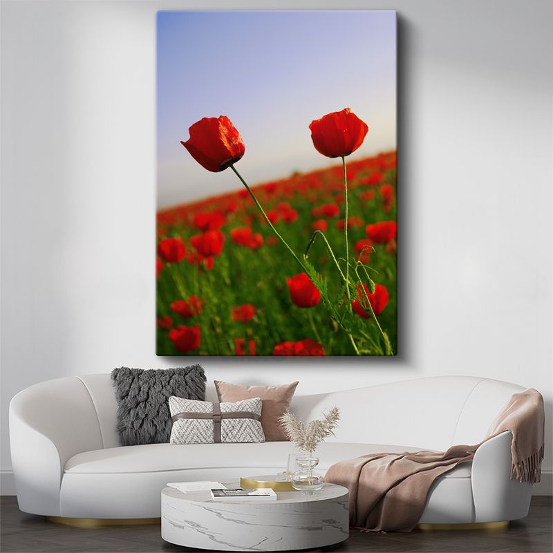 Gelincik Manzarası - Kırmızı Çiçekler ve Mavi Gökyüzü Kanvas Tablo