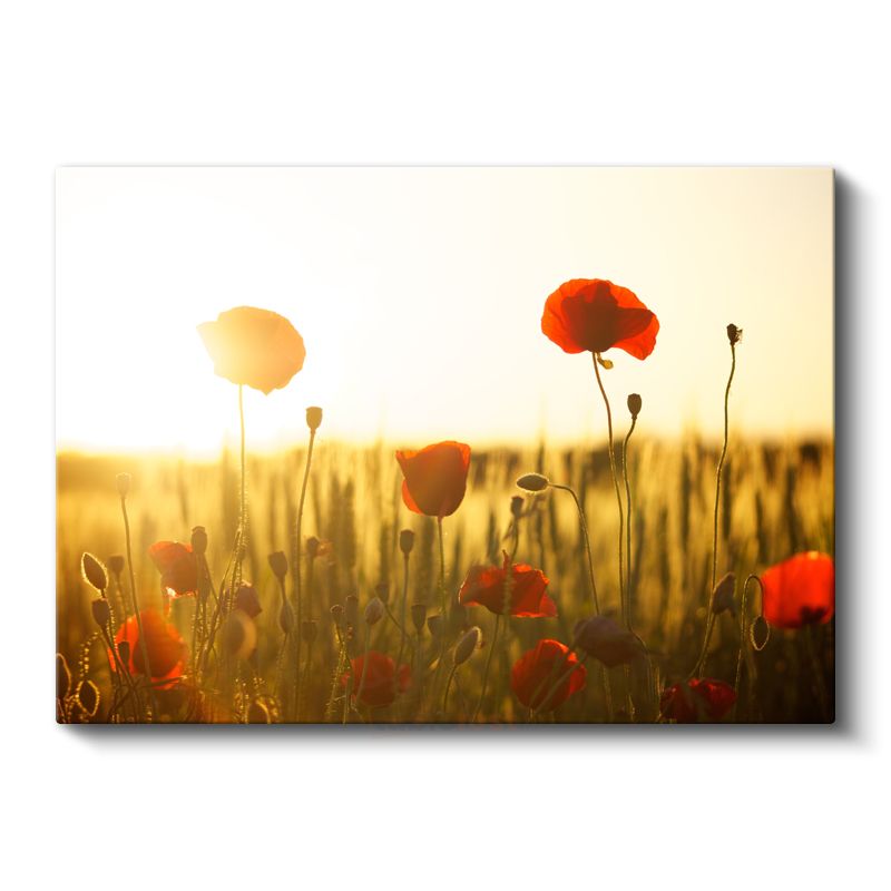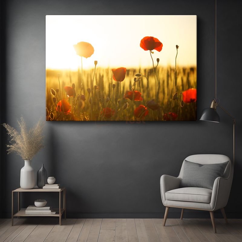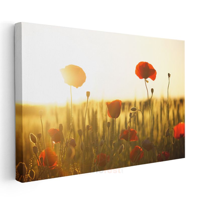 Gelincik Tarlası - Altın Sarısı Günbatımında Kırmızı Çiçekler Kanvas Tablo