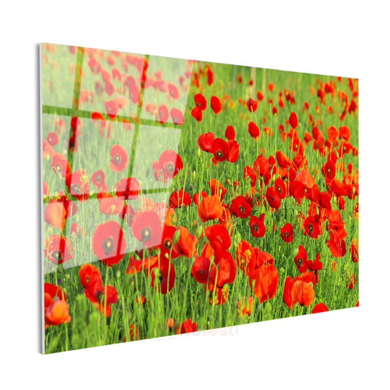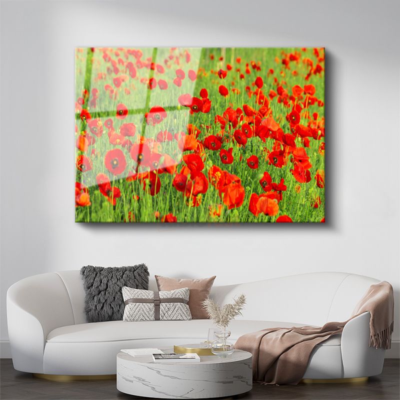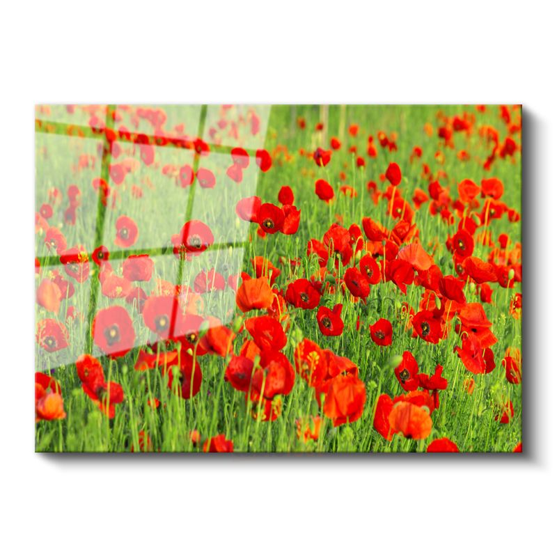 Gelincik Tarlası - Canlı Kırmızı Çiçek Denizi Cam Tablo