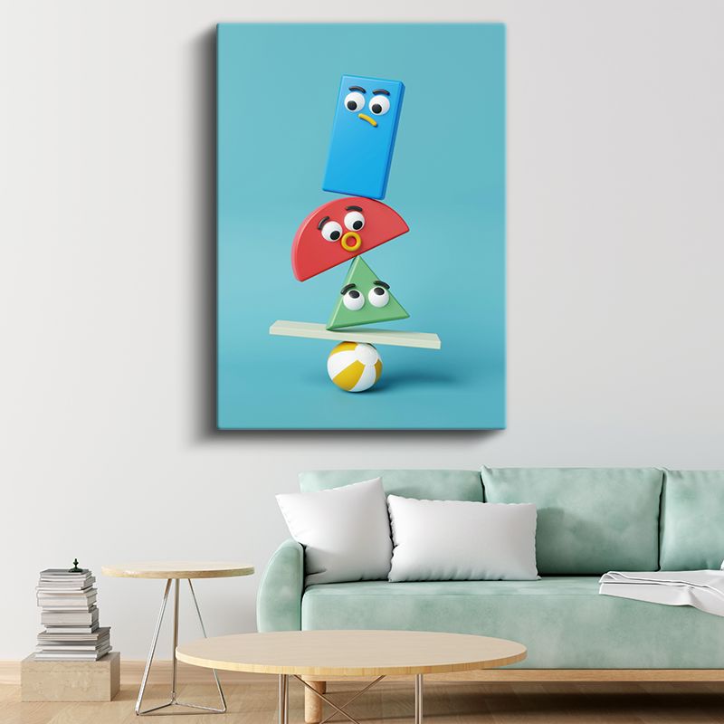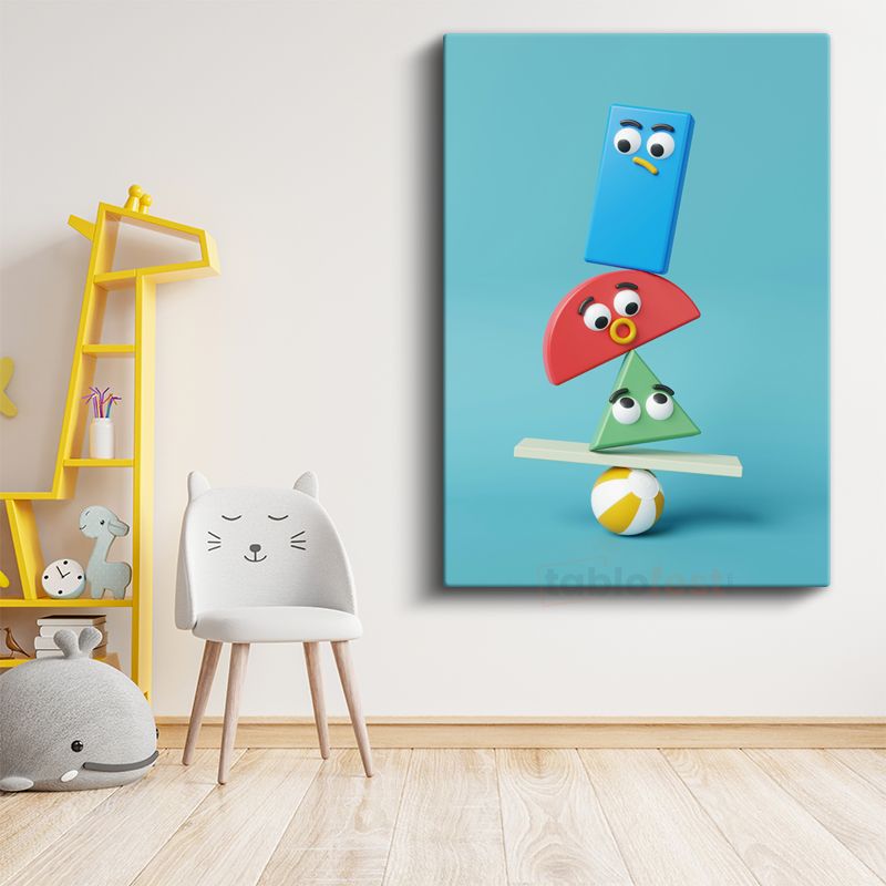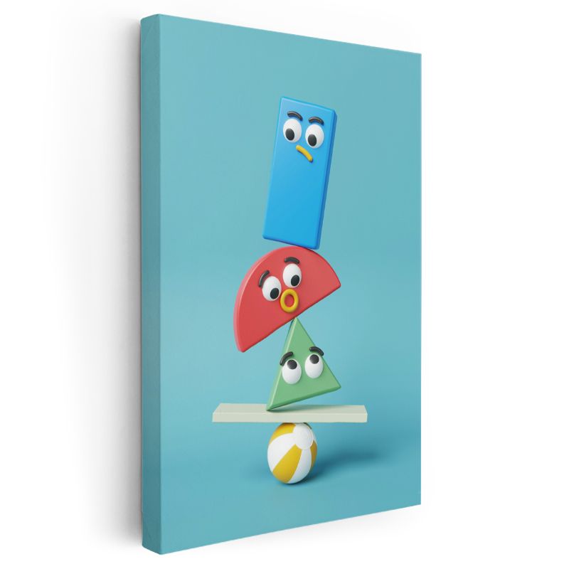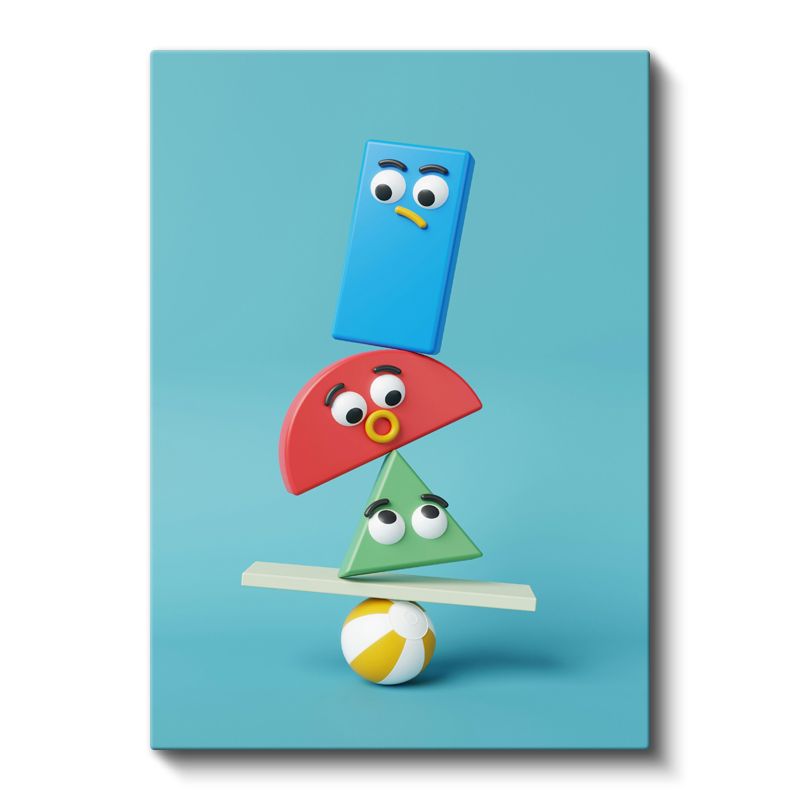 Geometrik Arkadaşlar - Renkli Şekiller Dengesi Kanvas Tablo