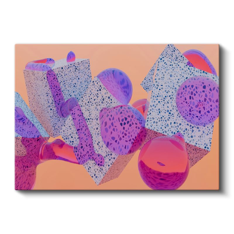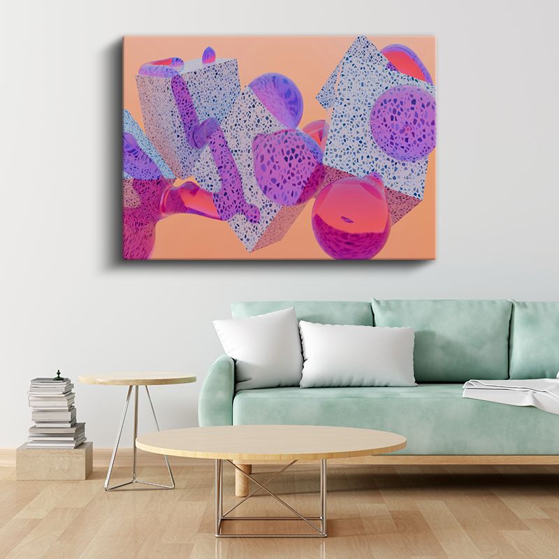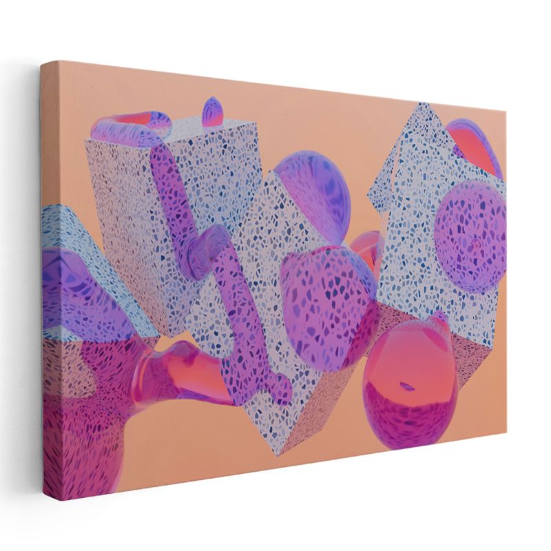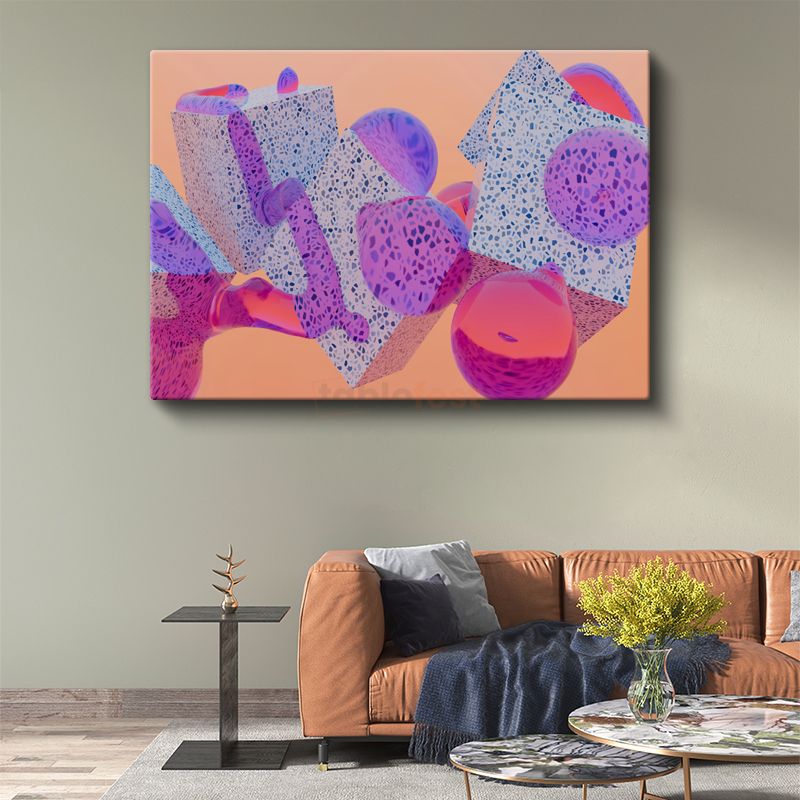 Geometrik Canlılık - Mercan Mor Üç Boyutlu Şekiller Kanvas Tablo