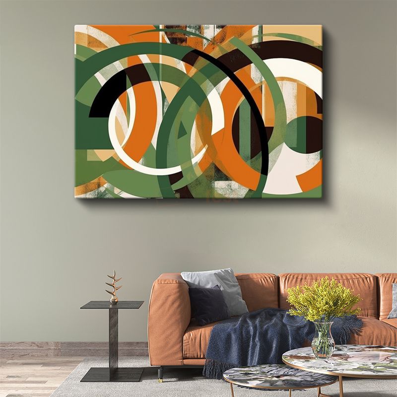 Geometrik Daireler - Yeşil ve Turuncu Tonlarında Modern Kompozisyon Kanvas Tablo