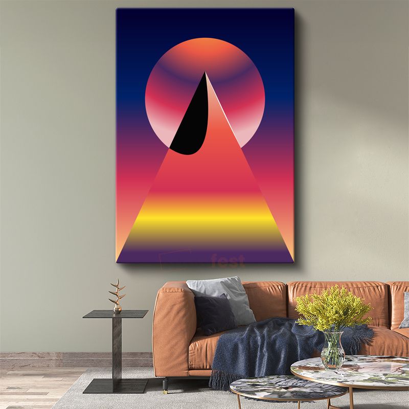 Geometrik Denge - Gün Batımı Renkleriyle Üçgen ve Daire Harmonisi Kanvas Tablo