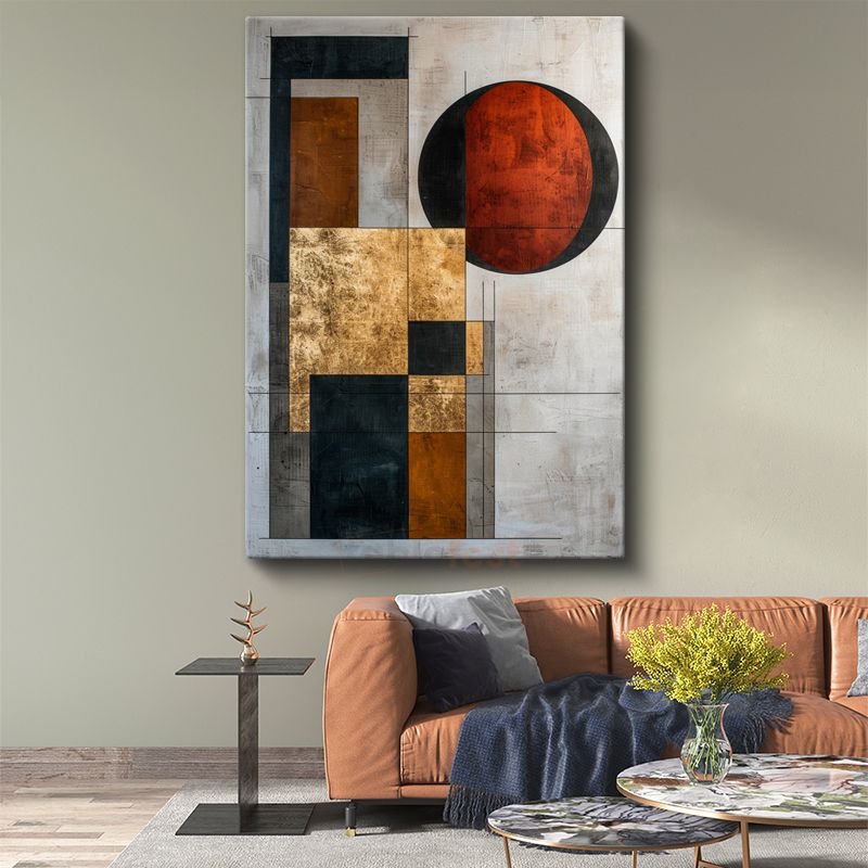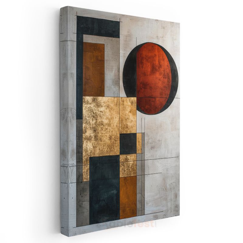 Geometrik Denge - Kırmızı Daire ve Kareler Kompozisyonu Kanvas Tablo