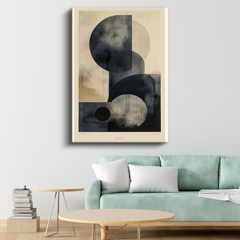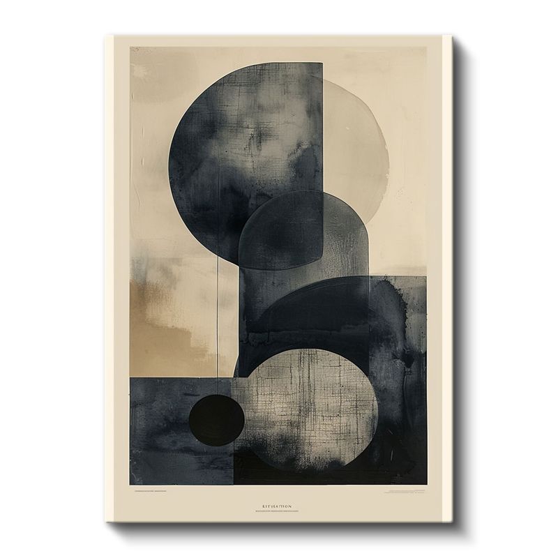 Geometrik Denge - Siyah Daireler Kompozisyonu Kanvas Tablo