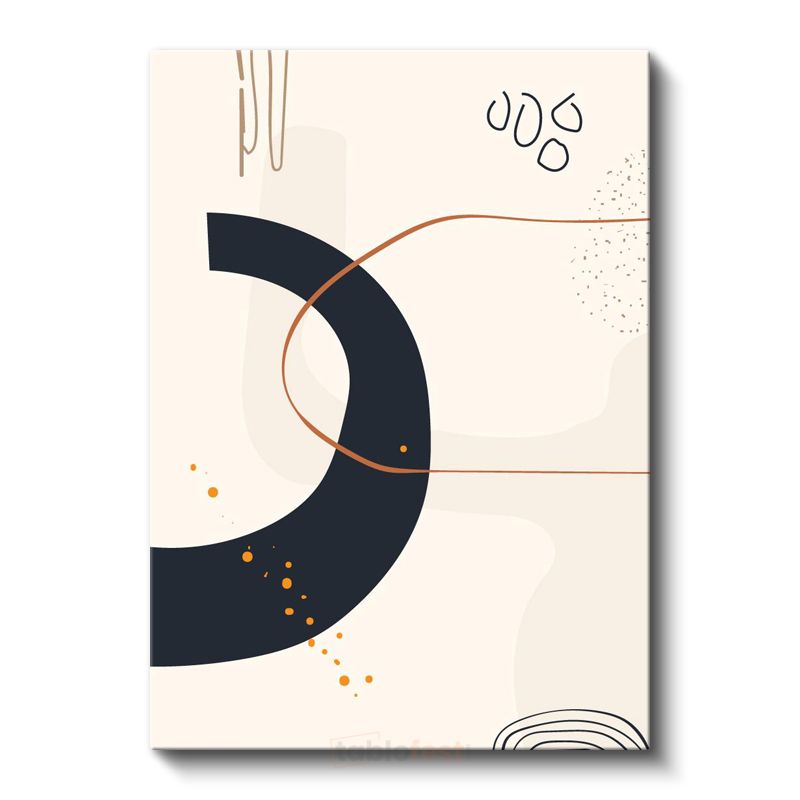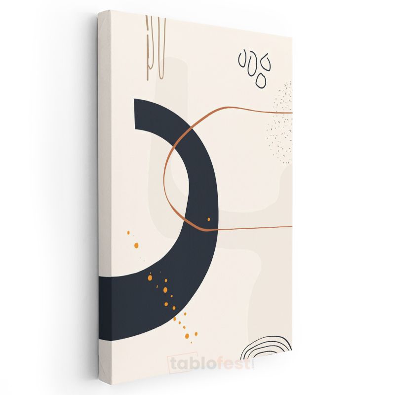 Geometrik Denge - Siyah Yarım Daire ve İnce Çizgiler Soyut Kanvas Tablo