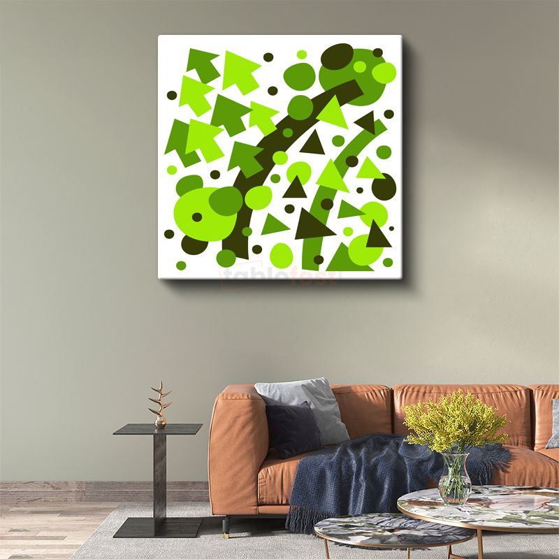 Geometrik Dinamizm - Yeşil Tonlarında Soyut Şekiller Kanvas Tablo