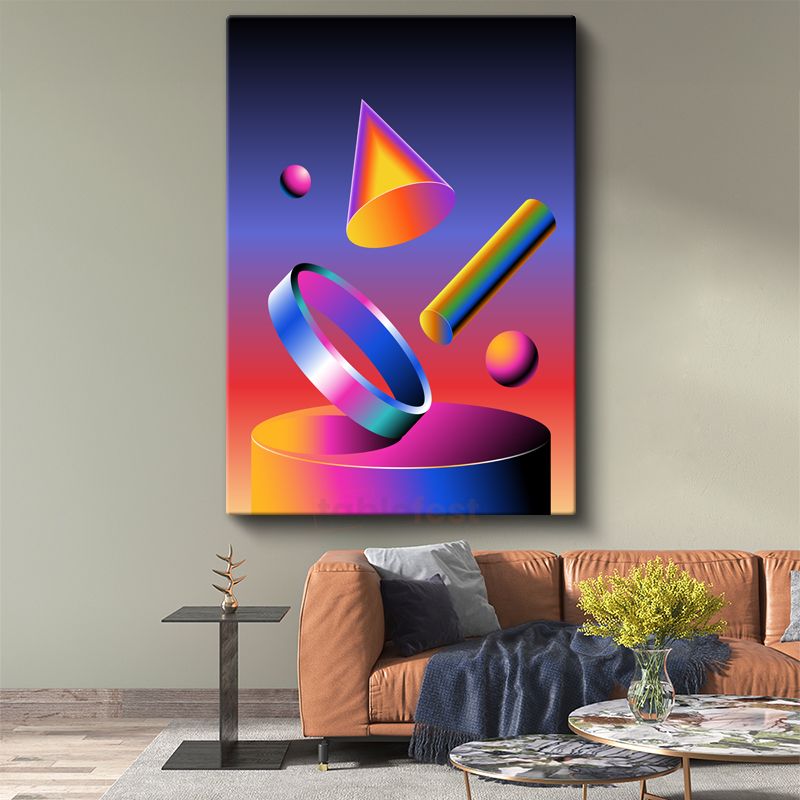 Geometrik Evren - Canlı Renkli 3D Şekiller Kanvas Tablo