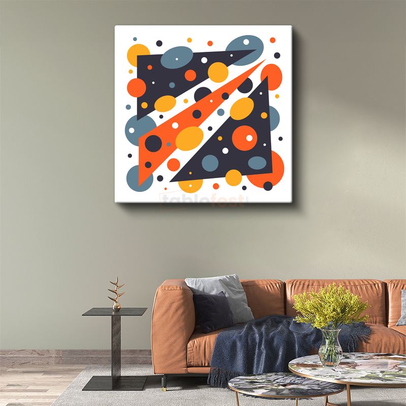 Geometrik Evren - Renkli Daireler ve Üçgenler Kanvas Tablo