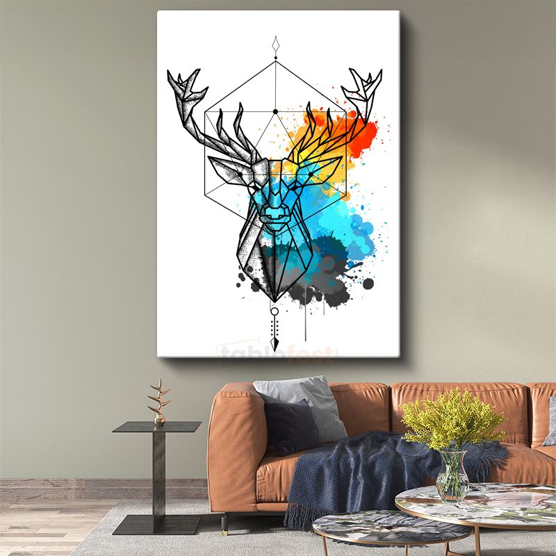 Geometrik Geyik - Renkli Sıçramalarla Bütünleşen Çizgisel Tasarım Kanvas Tablo