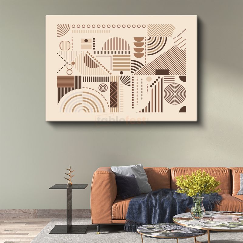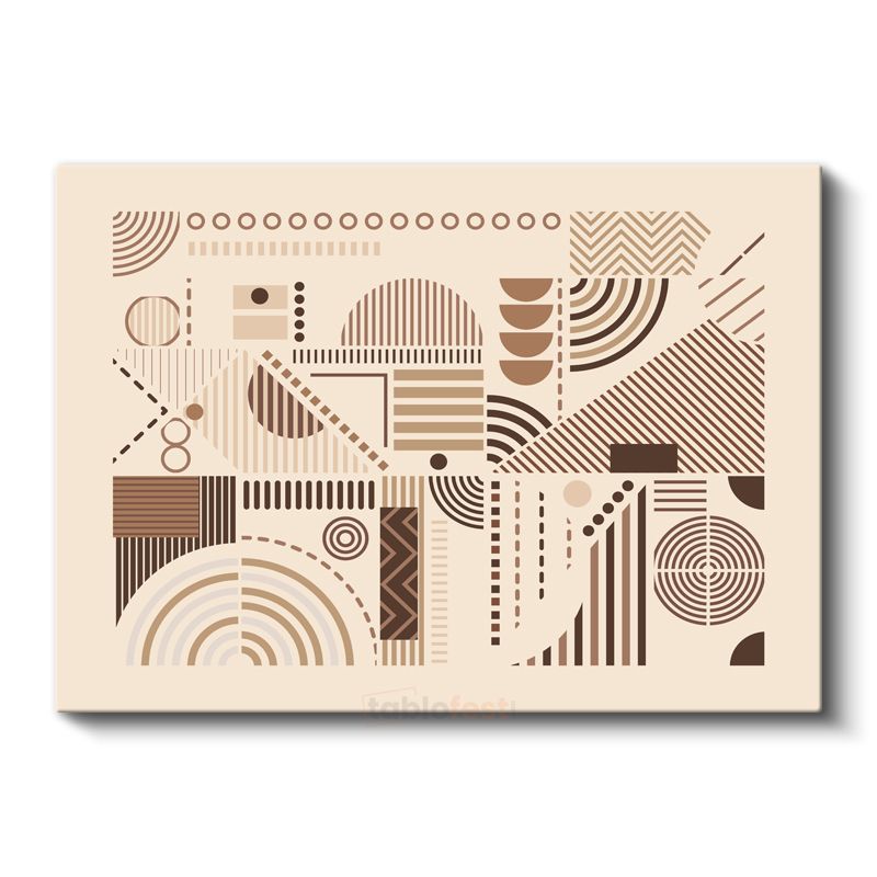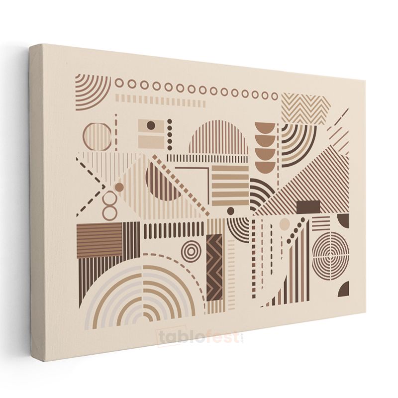 Geometrik Harmoni - Bej Zeminde Modern Çizgisel Desenler Kanvas Tablo