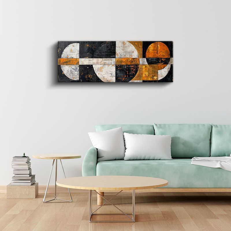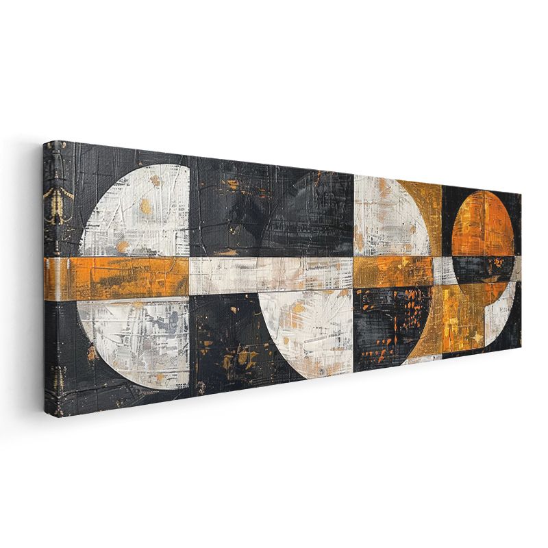 Geometrik Harmoni - Modern Siyah Turuncu Yarım Daire Deseni Kanvas Tablo