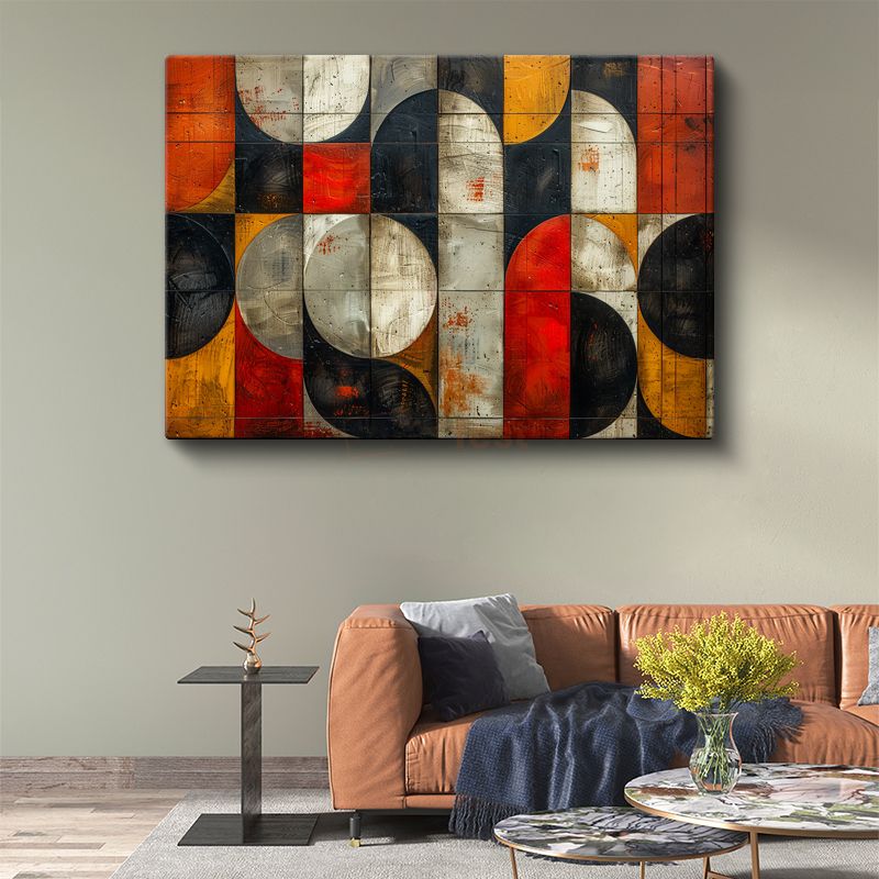 Geometrik Harmoni - Renkli Daire Parçaları Kompozisyonu Kanvas Tablo