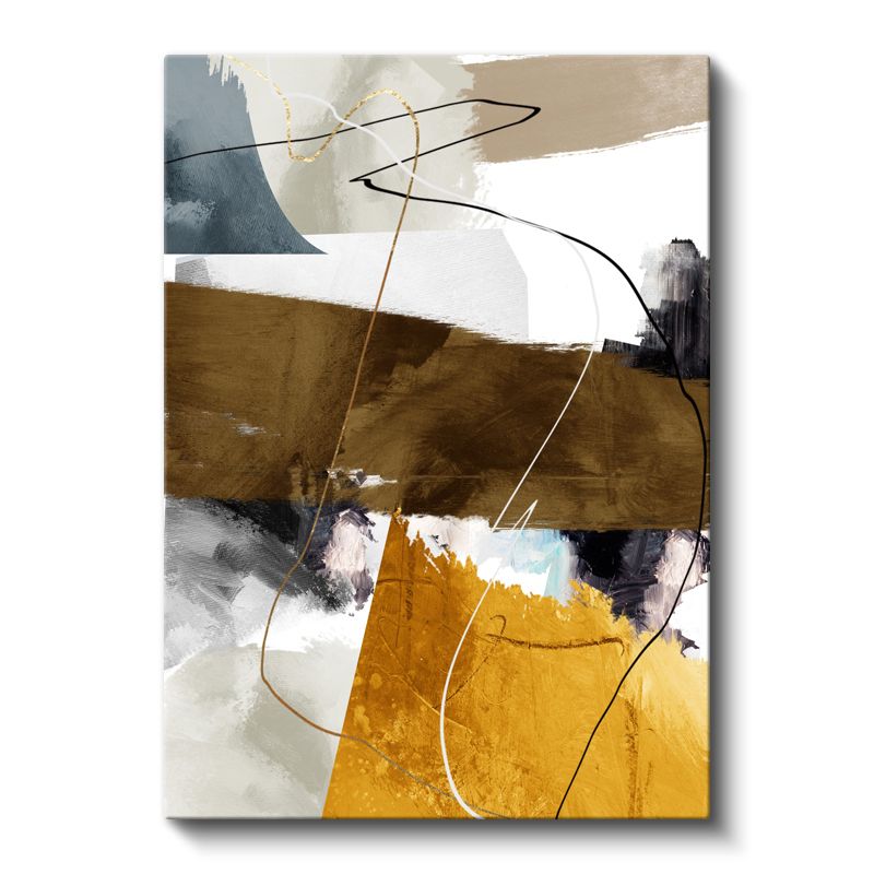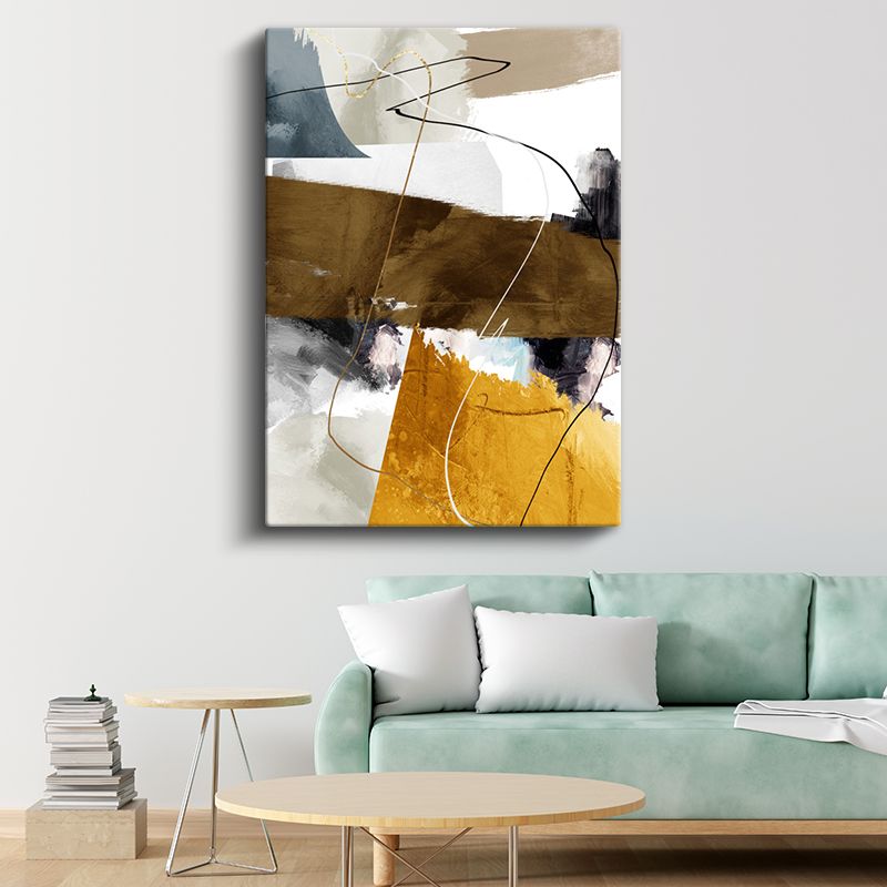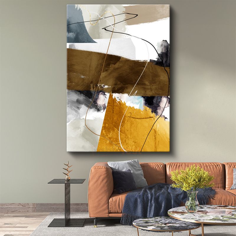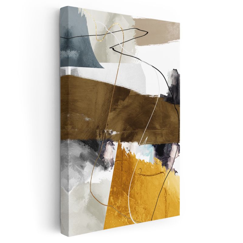 Geometrik Harmoni - Toprak Tonları ve İnce Çizgilerle Modern Soyut Kanvas Tablo