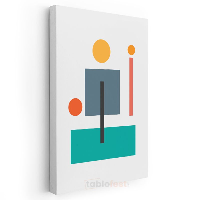 Geometrik Harmoni - Turkuaz ve Turuncu Dairelerle Minimalist Kanvas Tablo