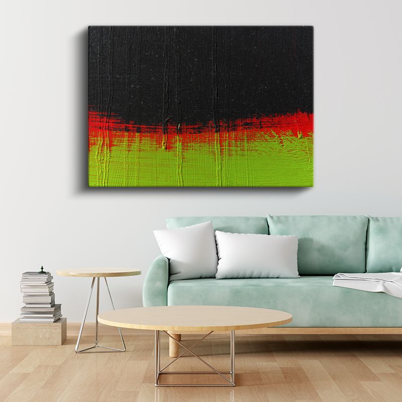 Geometrik Katmanlar - Siyah Kırmızı Yeşil Üçlüsü Kanvas Tablo
