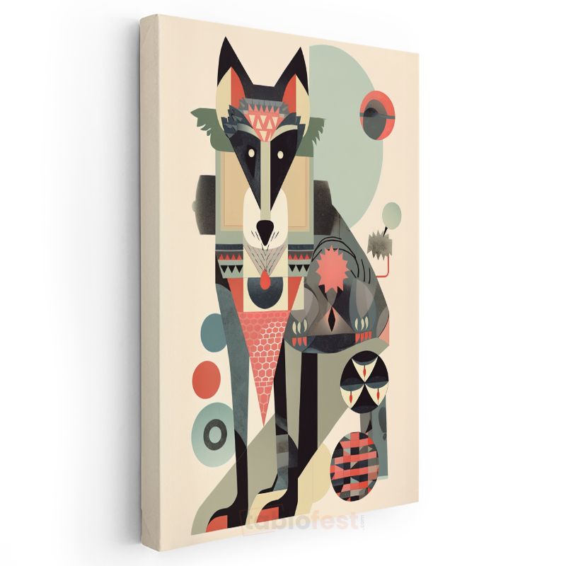 Geometrik Kurt - Modern Vektörel Hayvan Figürü Kanvas Tablo